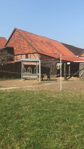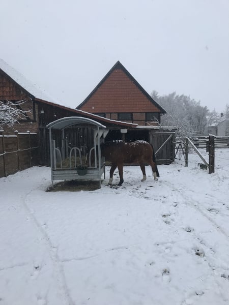 In meinem schönen Offenstall in 31162 OT Hockeln ist ein Platz für ein freundliches, rangniedriges Rentnerpferd frei. Bevorzugt wäre ein Wallach, da dies in der Vergangenheit immer gut geklappt hat. Aber auch eine entspannte /rangniedrige Stute wäre denkbar. Es steht bereits eine liebe Stute in Rente dort, die wieder Gesellschaft sucht, da leider ihr Freund kürzlich verstarb. Ich kann eine liebevolle rundum-Versorgung anbieten- du solltest aber bereit sein, weiterhin die Kosten für dein Pferd zu tragen. Natürlich würde ich mich aber auch sehr über Mithilfe freuen. Den Pferden steht 24/7 Heu zur Verfügung, eingestreut wird mit Stroh. Es gibt eine beheizte Selbsttränke, aber auch Wasser aus dem Bottich. Ein trockenes Futterlager und Platz für Zubehör etc. Im Sommer stehen die Pferde 24/7 auf der Weide mit Heu bei Bedarf. Die Weide ist teils hanglagig, aber mit gerade Flächen und einer großen Hütte mit zwei Eingängen. Wenn du dich angesprochen fühlst, melde dich gerne!