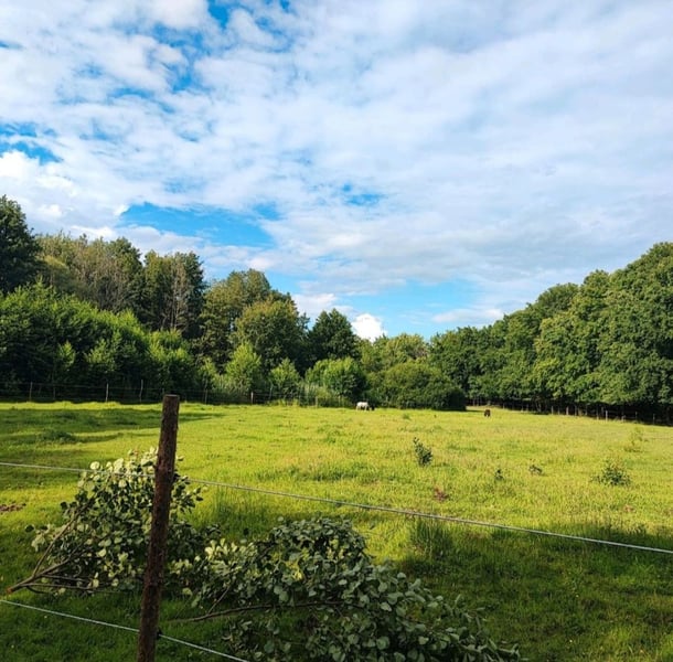 Hallöchen, in unserem großzügigen, idyllischen Offenstall mit Bachlauf haben wir aktuell noch freie Plätze. 🐴 Unsere Pferde stehen ganzjährig draußen. Insgesamt stehen ihnen aktuell ca. 6ha Wiese zur Verfügung. Unsere Koppeln sind mit einem festen Zaun eingezäunt. Als Wetterschutz stehen den Pferden verschiedene Unterstände und ein großer Baumbestand auf der Koppel zur Verfügung. Bei den Bäumen handelt es sich um Weiden welche für ihre Unterstützung bei Gelenkproblemen bekannt sind und Erlen, welche positiv auf Magen und Darm wirken. 🌳 Um bspw. Koliken vorzubeugen bekommen die Pferde auch im Sommer zusätzlich Heu. Ab diesem Jahr produzieren wir dieses auf unseren eigenen Biowiesen. 🌾 Wir achten sehr darauf dass ausreichend Futterstellen zur Verfügung stehen. Das Wasser steht in einer extra großen Wanne zur Verfügung und wird von uns zusätzlich aufbereitet. Aufgrund der Größe und nicht direktem Bodenkontakt friert sie im Winter nicht zu, zusätzlich kann die Wanne beheizt werden. Auf unserer Anlage gibt es einen XXL-Reitplatz und einen 15m Roundpen. Ausreiten ist ab Hof möglich. Des weiteren haben wir einen Bauwagen als Sattelkammer und Aufenthaltsraum, ein weiterer dient als Futterkammer. Die Sattelkammer ist im Winter beheizbar. Unsere Mausefalle mit Fell und Pfoten hat Zugang zu beiden Bauwagen. 🐱 Die Pferde werden täglich von uns auf Verletzungen und Krankheiten kontrolliert, außerdem können wir sie 24/7 über unsere Kameras beobachten. 🎥 Gegen Aufpreis ist es uns auch möglich einmal täglich das Füttern von Zusatzfutter zu übernehmen und Medikamente zu verabreichen. Uns liegt sehr viel daran das sich sowohl Mensch als auch Pferd wohl fühlen. ☀️ Kurz und knapp: ✅ganzjährige Offenstallhaltung mit Unterstand und Baumbestand ✅Erle & Weide zum knabbern ✅ganzjährige Heufütterung mit Bioheu aus eigener Ernte ✅Ausreichend Futter- und Wasserstellen, beheizbar ✅XXL Reitplatz und 15m Roundpen ✅Ausreiten ab Hof ✅Sattelkammer, Aufenthaltsraum (beheizbar) und Futterkammer ✅Lebendige Mausefalle mit Kuschelfaktor ✅tägliche Kontrolle auf nach Krankheiten und Verletzungen ✅24/7 Kameraüberwachung ✅Idylle und Entspannung pur ✅uvm. Gegen Aufpreis: -Füttern -Medikamentengabe Bei Fragen oder Interesse stehen wir Ihnen selbstverständlich zur Verfügung. Meldet euch gern für ein unverbindliches Kennenlernen und Besichtigen unsere Anlage. Wir freuen uns auf Ihre Nachricht. 📝 Mit freundlichen Grüßen Deborah Reschke