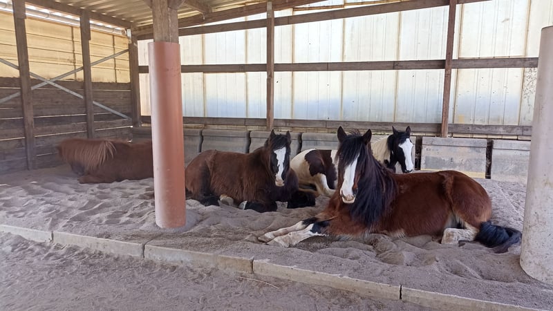 Bei uns sind die Pferde/Ponies auf einem ganzjährigen Auslauf und saisonal auf den Weiden. Außerdem steht ihnen eine Leckstein-Bar und ein Sand-Liegeplatz zur Verfügung. Anweiden wird von uns übernommen und im Herdenverband durchgeführt. Wir haben einen Reitplatz mit Licht, einen Putzplatz und auch eine Pferdedusche. Das Sattelzubehör ist in einer abschließbaren Sattelkammer untergebracht. Eine Impfpflicht gibt es nicht. Das Ausreitgelände ist direkt angrenzend. Unsere Anlage wird von uns täglich gereinigt, sowie auch die Weiden abgeäppelt. Der Preis ist Vollpension.