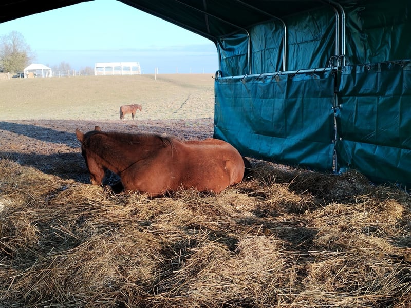 Sie suchen ein neues zu Hause für ihr Pferd? Wohin mit dem Sportpferd oder der Zuchtstute nach Karriereende? Ganz einfach: zu uns. Bei uns kann Ihr Pferd ganz Pferd sein und den ganzen Tag Pferdesachen machen. Als Mitglied einer gemischten Herde hat Ihr Pferd rund um die Uhr Zugang zu Artgenossen, Wasser, Heu/Gras und Mineralien. Die Herde steht ganzjährig auf 7 ha großen Weideflächen mit mehreren Weidezelten. Das Wohlergehen der Pferde wird täglich mehrmals kontrolliert. Hufschmied, Tierarzt oder weitere Serviceleistungen sind nach Absprache möglich. Auf dem Gelände ist ein großer abgegrenzter Platz zum Reiten oder sonstigem Bewegen der Pferde verfügbar. Ausritte ins Gelände sind möglich. In der Nähe (ca. 800 m) befindet sich eine große Reithalle sowie ein Dressurplatz, ein Springplatz und eine Geländestrecke (gesonderte Absprachen erforderlich).