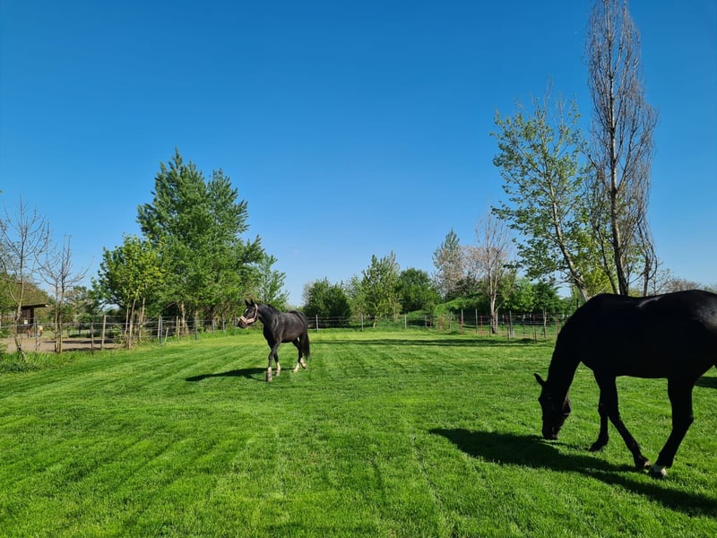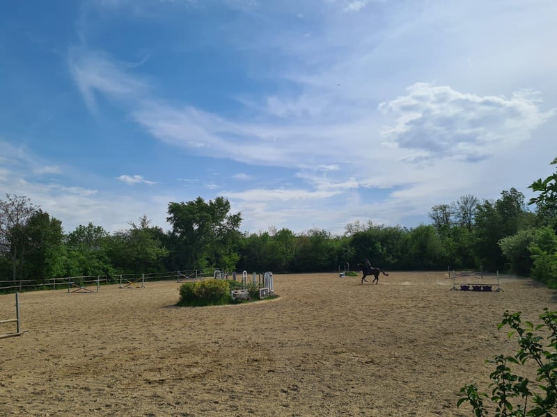 Wir sind ein Familienbetrieb mit jahrzehntelanger Erfahrung in Pferdeausbildung und Pferdehaltung im 22. Bezirk in Wien. Unsere Anlage ist öffentlich erreichbar und bietet Parkplätze für unsere Gäste. Wir bieten Paddockboxen: Boxenmaße: ca. 4,4 x 3,5 + inkl. überdachtes Paddock 7x4m + inkl. Freilauffläche ca. 30m x 4,0 m + inkl. kleine angeschlossende Privatkoppel mit Gras- und Baumbestand ca.10x30m Wir bitten für eier Verständnins, dass aufgrund der angrenzenden Koppelgameinschaften dieser Platz nur für Wallache geeignet ist. An erster Stelle steht bei uns das Wohlbefinden der Pferde. Qualitätsfutter, Heu und Stroh, sowie 3x täglich Fütterung mit Kraftfutter und fachmännische Betreuung 365 Tage im Jahr sind bei uns eine Selbstverständlichkeit. Unser Betrieb liegt am Rande von Wien im 22 Bezirk und ist leicht mit öffentlichen Verkehrsmitteln oder dem Auto zu erreichen. Gut aufgeteilte Stallungen, große helle Boxen und ganztägige Bewegung, Schrittmaschine, Koppelgang auf Weiden oder Auslauf sorgen für gesunde und ausgeglichene Pferde. Durch die umfangreiche Ausstattung mit 3 Reithallen, 2 Dressurplätzen 60x20, einem XXL Springplatz 80x60, Roundpen, sowie Ausreitgelände rund um den Stall, kann man den Reitsport bei uns bei jeder Witterung ausüben. Wir bieten Zusatzleistungen auf Wunsch, wie: Schrittmaschine, Deckenservice, Privatweiden, Koppelgang ganz-, oder halbtags, Solarium, Hofmag-Behandlungen, professionellem Unterricht in Dressur und Springen, sowie Beritt und Turniervorbereitung. Gerne kannst du zu den Open Stable Zeiten So 14.00-16.00 Uhr gegen Voranmeldung vorbeikommen. Wir freuen uns auf dich!