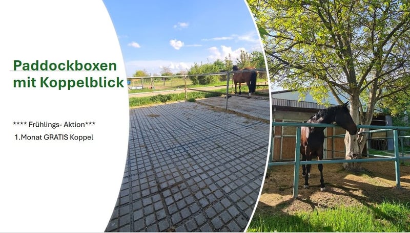 Wir sind ein Familienbetrieb mit jahrzehntelanger Erfahrung in Pferdeausbildung und Pferdehaltung im 22. Bezirk in Wien. Unsere Anlage ist öffentlich erreichbar und bietet Parkplätze für unsere Gäste. Wir bieten große, helle Boxen mit Paddock mit Blick in den begrünten Innenhof: Boxenmaße: 3,5 x 3,3 m + Paddock 5,8 x 3,6 m *****Frühlings-Aktion: 1. Monat Gratis Koppel inklusive***** An erster Stelle steht bei uns das Wohlbefinden der Pferde. Qualitätsfutter, Heu und Stroh, sowie 3x täglich Fütterung mit Kraftfutter und fachmännische Betreuung 365 Tage im Jahr sind bei uns eine Selbstverständlichkeit. Unser Betrieb liegt am Rande von Wien im 22 Bezirk und ist leicht mit öffentlichen Verkehrsmitteln oder dem Auto zu erreichen. Gut aufgeteilte Stallungen, große helle Boxen und ganztägige Bewegung, Schrittmaschine, Koppelgang auf Weiden oder Auslauf sorgen für gesunde und ausgeglichene Pferde. Durch die umfangreiche Ausstattung mit 3 Reithallen, 2 Dressurplätzen 60x20, einem XXL Springplatz 80x60, Roundpen, sowie Ausreitgelände rund um den Stall, kann man den Reitsport bei uns bei jeder Witterung ausüben. Wir bieten Zusatzleistungen auf Wunsch, wie: Schrittmaschine, Deckenservice, Privatweiden, Koppelgang ganz-, oder halbtags, Solarium, Hofmag-Behandlungen, professionellem Unterricht in Dressur und Springen, sowie Beritt und Turniervorbereitung. Gerne kannst du zu den Open Stable Zeiten So 14.00-16.00 Uhr gegen Voranmeldung vorbeikommen. Wir freuen uns auf dich! *****Frühlings-Aktion: 1. Monat Gratis Koppel inklusive*****