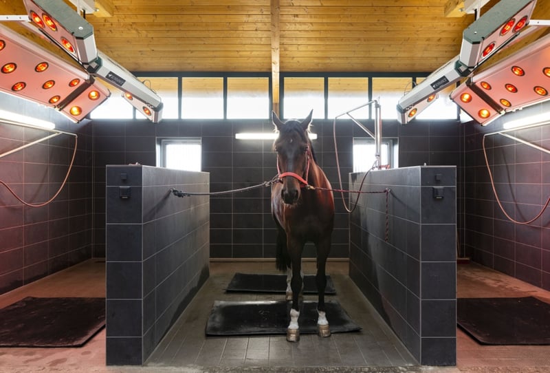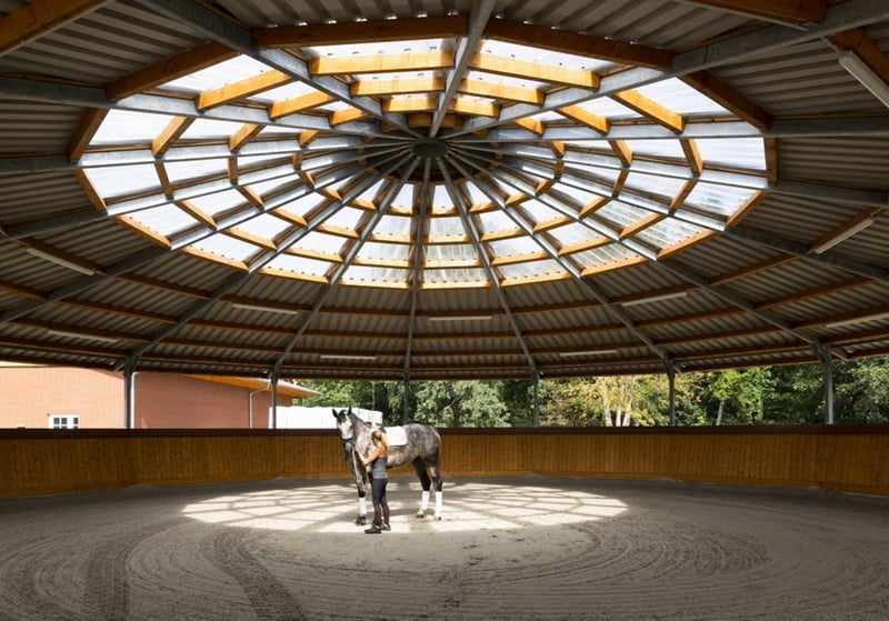 La nostra scuderia per l'allevamento e l'addestramento si trova nel centro del distretto dei laghi del Meclemburgo e offre ai cavalli sportivi e da riproduzione e ai giovani le migliori condizioni per crescere e prosperare. Disponiamo di due maneggi coperti che misurano rispettivamente 18m x 45m e 25m x 60m. Il nostro grande maneggio coperto, l'arena di salto di 60 x 75 m e l'ippodromo sono dotati di un moderno sistema di flusso e riflusso per garantire un terreno sempre perfetto, indipendentemente dalle condizioni esterne. Disponiamo anche di una scuderia e di un'arena per l'affondo. Per l'allenamento fitness o semplicemente per rilassarsi, c'è una bellissima area di equitazione che inizia direttamente dietro il nostro cortile. Il nostro casinò offre spazio per riunioni accoglienti, eventi o seminari. Quando il tempo è bello, potete godervi il sole sulle nostre terrazze. Un totale di 52 box spaziosi attendono il vostro cavallo nella nostra fattoria. Ci sono stalle libere per i cavalli che non vengono lavorati. L'accesso giornaliero ai nostri paddock è possibile su richiesta. In tutte le nostre scuderie abbiamo ampi box per il lavaggio con solarium. Per le vostre attrezzature sono disponibili locali per le selle e le coperte. Le nostre lavatrici e asciugatrici industriali possono essere utilizzate previo accordo.