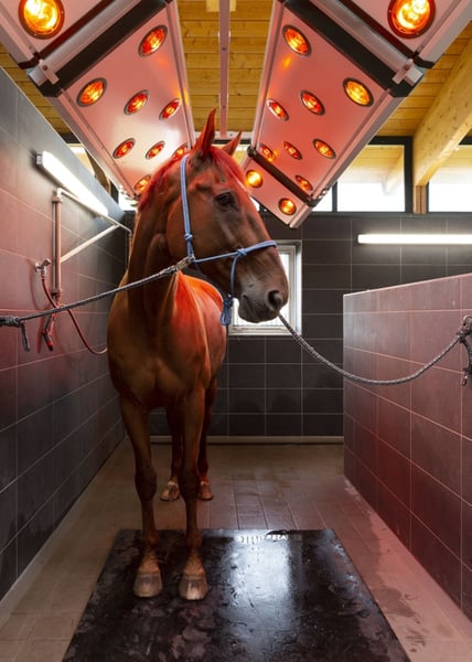 Onze fok- en trainingsstal ligt midden in het Mecklenburgse merengebied en biedt sport- en fokpaarden en de nakomelingen de beste omstandigheden om te groeien en te gedijen. Op ons terrein staan twee rijhallen met de afmetingen 18m x 45m, respectievelijk 25m x 60m tot uw beschikking. Onze grote overdekte manege, onze springpiste van 60m x 75m en onze renbaan hebben een modern eb- en vloedsysteem zodat de ondergrond altijd perfect is, ongeacht de externe omstandigheden. Verder zijn er een stapmolen en een longeerhal aanwezig. Voor fitnesstraining of gewoon om te ontspannen, is er een heel mooi rijgebied, dat direct achter onze boerderij begint. Ons casino biedt ruimte voor gezellige bijeenkomsten, evenementen of seminars. Bij mooi weer kunt u genieten van de zon op onze terrassen. In totaal staan er 52 ruime boxen klaar voor uw paard op onze boerderij. Voor paarden die niet aan het werk zijn, zijn er gratis boxen beschikbaar. Dagelijkse uitstapjes naar onze paddocks zijn mogelijk op aanvraag. We hebben ruime wasboxen met solariums in al onze stalvleugels. Zadel- en dekenkamers zijn beschikbaar voor uw uitrusting. Onze industriële wasmachines en drogers kunnen op afspraak gebruikt worden.