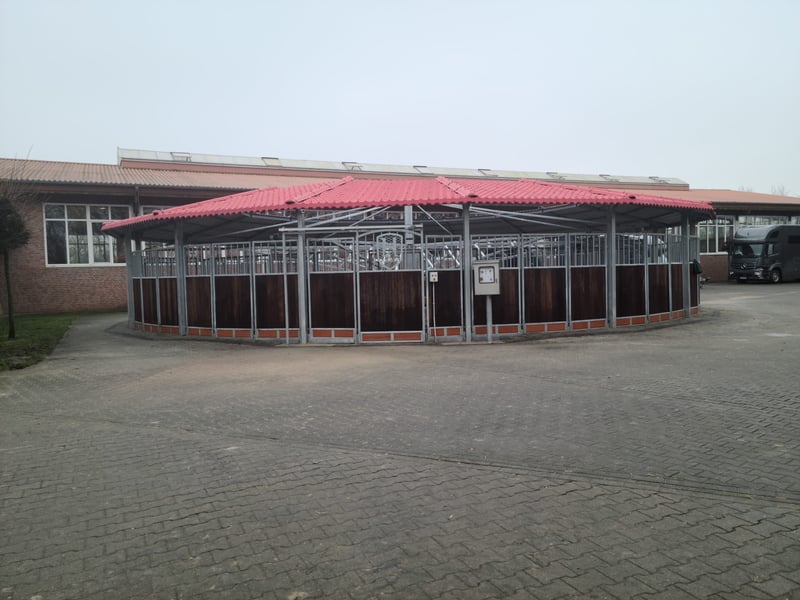 Diese exklusive, idyllische Reitanlage wurde von ihren Besitzern mit viel Liebe zum Detail und hochwertigen Materialien ausgestattet und vermittelt vom ersten Moment an ein luxuriöses, aber dennoch behagliches Ambiente. Das Anwesen bietet sowohl Wohnkomfort als auch erstklassige Trainingsmöglichkeiten für Reiter und Pferde, ohne dabei den Aspekt des gehobenen Lebensstils aus den Augen zu verlieren. Die Anlage befindet sich in einer bezaubernden ländlichen Lage, eingebettet in Wiesen und Bäume, und erstreckt sich über eine beeindruckende Gesamtfläche von ca. 34.000 m². Trotz der ruhigen Umgebung ist das Zentrum über die nahegelegene Autobahn schnell erreichbar. Große Städte wie Osnabrück (Flughafen ca. 45 Minuten), Düsseldorf (Flughafen ca. 1 Stunde 15 Minuten), Münster (ca. 45 Minuten) und Enschede (ca. 20 Minuten) sind ebenfalls gut zu erreichen. Wohnraum: Das Landhaus (Baujahr 1999) verfügt über eine Wohnfläche von ca. 395 m² und bietet Raum für exklusives Wohnen: Erdgeschoss: - Geräumige Eingangshalle mit Toilette, Waschbecken und Dusche - Empfangszimmer mit offenem Kamin und einer eleganten Treppe in den ersten Stock - Essbereich mit offener Designerküche und Kochinsel - Großer Salon - Arbeitszimmer - Hauswirtschaftsraum mit Treppe zum Keller Erster Stock: - Empore und Flur - 4 Schlafzimmer, darunter eine Master-Suite mit begehbarem Kleiderschrank, Bad en Suite, Whirlpool und Sauna - 3 weitere Schlafzimmer - Zweites Badezimmer mit Dusche - Dachboden Außerdem gehören zum Landhaus: - Terrasse und großzügiger, angelegter Garten - Schwimmteich und zwei Pavillons Zusätzliches Wohnangebot: - Country Cottage: Wohnfläche von ca. 80 m², bestehend aus einer Küche, zwei Badezimmern, zwei Wohnzimmern mit integriertem Schlafbereich. - Wohnung (Baujahr 2000): Oberhalb der Reithalle befinden sich zwei separate Wohn-/Schlafzimmer mit Gemeinschaftsküche und -badezimmer. Beheizt wird diese Einheit mit Gas. Reitanlage: - Beheizte Reithalle (20 x 60 m) mit Beregnungsanlage - Insgesamt 42 Boxen, davon im Hauptstall 24 mit Fenster sowie 8 weitere mit Fenster - Casino, Wirtschaftsraum, WC, zwei Sattelkammer - Kalt- und Warmwasser, Waschboxen, 4 Putzplätze - Solarium, Föhnsolarium, beheiztes Winterdeckenlager - Zweite Halle (20 x 30 m) - Heu- und Strohhalle sowie Maschinen- und Gerätehalle - Außenviereck (60 x 20 m) mit Bewässerungsanlage mit Pavillon am Viereck - mehrere Paddocks, teils mit zusätzlicher Weidemöglichkeit Das Anwesen verfügt über zwei separate Zugänge: einen direkten Zugang vom Wohnhaus und eine separate Zufahrt für Kunden. Die Wege auf der Anlage sind gepflastert, und das gesamte Areal ist umzäunt. Ein Feuerlöschteich sorgt für zusätzliche Sicherheit. Zusammenfassung: - Gesamtfläche: ca. 34.400 m² - 1 Landhaus ca. 395 m² - 1 Wohnung (in der Reithalle) - 1 Personal-/Gästehaus (Country Cottage) - Schwimmteich mit Poolhouse - PKW- und LKW-Parkplatz - 42 Boxen, davon 32 mit Fenster (3,80 x 3,80 m) - 2 Reithallen und Außenplatz - Schwimmteich mit Poolhouse - PKW- und LKW-Parkplatz Diese exklusive Residenz vereint Komfort und Charme auf einzigartige Weise und eignet sich hervorragend für anspruchsvolle Reiter, die Wert auf ein gehobenes Ambiente und erstklassige Trainingsmöglichkeiten legen. Ein ideales Domizil für den Pferdesport, Familienfeiern oder ruhige Stunden mit einem Höchstmaß an Privatsphäre. Lage Emsbüren, eine idyllische Gemeinde im Herzen des Emslands, bietet eine perfekte Balance zwischen Natur und urbaner Anbindung. Die Region ist bekannt für ihre malerischen Wiesen, Wälder und Flusslandschaften, die ideale Bedingungen für Erholung und Freizeitaktivitäten wie Reiten, Wandern und Radfahren schaffen. Die Lage punktet mit einer hervorragenden Verkehrsanbindung. Über die nahegelegene Autobahn A31 sind größere Städte wie Münster, Osnabrück und Enschede schnell erreichbar. Auch der internationale Flughafen Münster/Osnabrück ist nur eine kurze Fahrt entfernt. Emsbüren selbst verfügt über eine gute Infrastruktur mit Schulen, Einkaufsmöglichkeiten und gastronomischen Angeboten. Kulturelle Highlights wie regionale Feste und traditionsreiche Veranstaltungen sowie die Nähe zu Naturparks machen die Gegend zu einem lebenswerten und attraktiven Standort, der Ruhe und Abwechslung gleichermaßen bietet.