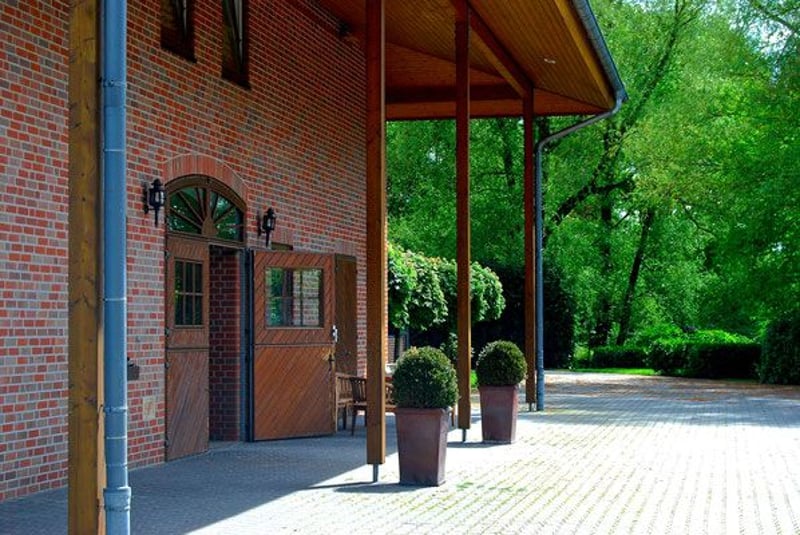 Ekskluzywna, malownicza stadnina jeździecka została starannie wykończona przez jej właścicieli z dbałością o szczegóły i wysokiej jakości materiałami, co od pierwszego momentu tworzy luksusową, a zarazem przytulną atmosferę. Posiadłość oferuje zarówno komfort mieszkalny, jak i najwyższej klasy możliwości treningowe dla jeźdźców i koni, nie tracąc przy tym z oczu aspektu wyrafinowanego stylu życia. Obiekt położony jest w urokliwej, wiejskiej okolicy, wśród łąk i drzew, i rozciąga się na imponującej powierzchni około 45 000 m². Pomimo spokojnej lokalizacji, centrum jest łatwo dostępne dzięki bliskości autostrady. Duże miasta, takie jak Osnabrück (lotnisko ok. 45 minut), Düsseldorf (lotnisko ok. 1 godzina 15 minut), Münster (ok. 45 minut) oraz Enschede (ok. 20 minut), są również dobrze skomunikowane. Mieszkanie: Dworek (rok budowy 1999) ma powierzchnię około 395 m² i zapewnia przestrzeń do ekskluzywnego zamieszkania: Parter: - Przestronny hall wejściowy z toaletą, umywalką i prysznicem - Pokój recepcyjny z kominkiem i eleganckimi schodami na piętro - Jadalnia z otwartą, designerską kuchnią i wyspą kuchenną - Duży salon - Gabinet - Pomieszczenie gospodarcze z schodami do piwnicy Piętro: - Empora i korytarz - 4 sypialnie, w tym główna suite z garderobą, łazienką en suite, jacuzzi i sauną - 3 kolejne sypialnie - Druga łazienka z prysznicem - Poddasze Do dworku należą także: - Taras i przestronny, zagospodarowany ogród - Basen naturalny i dwa pawilony Dodatkowe mieszkanie: - Country Cottage: powierzchnia ok. 80 m², składające się z kuchni, dwóch łazienek, dwóch salonów zintegrowanych z sypialnią - Mieszkanie (rok budowy 2000): nad halą ujeżdżeniową znajdują się dwa osobne pokoje mieszkalne/sypialne z wspólną kuchnią i łazienką. Ogrzewanie gazowe. Stajnia jeździecka: - Ogrzewana hala ujeżdżeniowa (20 x 60 m) z systemem nawadniania - W sumie 42 boksy, w tym 24 z oknami w głównym budynku oraz 8 kolejnych z oknami - Kasino, pomieszczenie gospodarcze, WC, dwie siedziby na siodła - Kąpieliska na zimną i ciepłą wodę, boksy myjnia, 4 miejsca do czyszczenia koni - Solarium, solarium z suszarką, ogrzewany magazyn na derki - Druga hala (20 x 30 m) - Magazyny na siano i słomę oraz hala na maszyny i sprzęt - Plac kwadratowy (60 x 20 m) z systemem nawadniania i pawilonem przy placu - Kilka padoków, częściowo z możliwością wypasu Posiadłość posiada dwa oddzielne wejścia: jedno bezpośrednio z domu mieszkalnego oraz osobne dla gości. Drogi na terenie obiektu są wybrukowane, a cały teren jest ogrodzony. Dodatkowe bezpieczeństwo zapewnia zbiornik przeciwpożarowy. Podsumowanie: - Całkowita powierzchnia: ok. 45 000 m² - 1 dworek ok. 395 m² - 1 mieszkanie (nad halą ujeżdżeniową) - 1 dom dla personelu/ gości (Country Cottage) - Basen naturalny z poolhouse - Parking dla samochodów osobowych i ciężarowych - 42 boksy, w tym 32 z oknami (3,80 x 3,80 m) - 2 hale ujeżdżeniowe i plac zewnętrzny - Basen naturalny z poolhouse - Parking dla samochodów i ciężarówek Ta ekskluzywna rezydencja łączy komfort i urok w unikalny sposób, stanowi doskonałe miejsce dla wymagających jeźdźców ceniących sobie wysokie standardy i doskonałe warunki treningowe. To idealne miejsce dla miłośników sportów konnych, rodzinnych uroczystości lub spokojnych chwil w najwyższym stopniu prywatności. Lokalizacja Emsbüren, malownicza gmina w sercu Emslandu, zapewnia idealną równowagę między naturą a dostępem do infrastruktury miejskiej. Region słynie z malowniczych łąk, lasów i krajobrazów rzecznych, które tworzą doskonałe warunki do wypoczynku i rekreacji, takiej jak jazda konna, piesze wędrówki czy jazda na rowerze. Lokalizacja wyróżnia się doskonałym połączeniem komunikacyjnym. Dzięki bliskości autostrady A31 można szybko dotrzeć do większych miast, takich jak Münster, Osnabrück czy Enschede. Międzynarodowe lotnisko Münster/Osnabrück jest również w zasięgu krótkiej jazdy. Emsbüren ma dobrze rozwiniętą infrastrukturę z szkołami, sklepami i ofertą gastronomiczną. Kulturalne atrakcje, takie jak regionalne festyny i tradycyjne wydarzenia, a także bliskość parków krajobrazowych, czynią tę okolicę miejscem przyjaznym do życia, łączącym spokój i różnorodność.