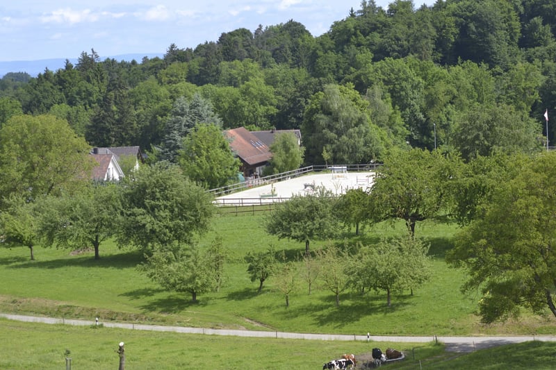 Nestled within an idyllic landscape of gentle hills, this exceptional estate is a true gem for horse lovers and nature enthusiasts alike. Located in a peaceful rural setting, it remains easily accessible between Bischofszell, Waldkirch, and St. Gallen. The property includes a spacious seven-room main residence with approximately 184 m² of living space, as well as a large stable building currently housing 11 horse stalls. Integrated into the stable is an attractive 5.5-room duplex apartment with around 146 m² of living space—ideal for operators, family members, or staff. The offering is further enhanced by an approved construction project (February 2023) for a new stable with an additional nine horse stalls on a third building plot. Approximately 3.3 hectares of additional pasture land provide versatile usage options. Beyond expansive, well-maintained pastures, the estate features a thoughtfully designed show jumping arena with natural obstacles such as walls, steps, and tree trunks. An indoor riding arena measuring about 70 × 35 meters offers ideal training conditions. Numerous fruit and nut trees, along with a small woodland, provide pleasant shade and emphasize the property's natural character. The stunning location offers riders and horses a diverse trail riding area immersed in nature, tranquility, and numerous exploration opportunities. This special property is perfect for connoisseurs of the extraordinary who wish to combine living, nature, and horsekeeping. We would be pleased to provide further information and a detailed exposé upon serious inquiry. Note: The property is situated in an agricultural zone and is subject to the rural land law (BGBB). Purchase is only possible for self-managers, and proof of this status is required to obtain the purchase permit from the Thurgau Department of Agriculture. Your contact: Dario Tinner +41 79 921 67 84 dario@multistudio.ch www.multistudio.ch