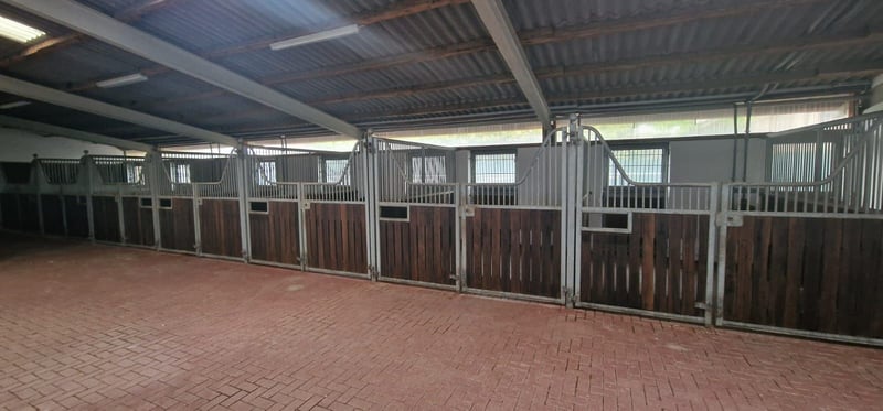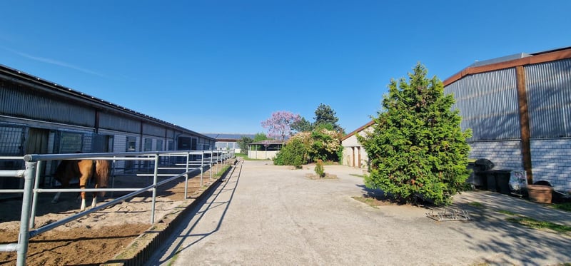 Professional equestrian facility for high-level sports in the Rhine-Neckar metropolitan region. The property is well-connected in the greater Mannheim, Worms, Speyer, Ludwigshafen area. The facility is well-maintained, fully utilized, and meets all equestrian requirements. The equestrian center is spaciously built and has excellent transport links. The facility is based on a very nice architectural concept. The specified location is not identical to the actual site to protect the identity. Area owned: approx. 4 ha Number of horses: approx. 45 horses Training facilities: – Riding arenas – Riding areas Types of accommodation: – Paddock boxes – Stalls Miscellaneous: Energy performance certificate is in preparation. The purchase price is plus 3.57% broker's commission including VAT. The inventory, machinery, and PV system are not included in the purchase price. The specified location is not identical to the actual site to protect the identity. We would be happy to provide you with detailed information. Please contact us. Thank you. Further pictures of this property and additional real estate offers can be found at www.wir-immobilien.com W.I.R. Immobilien - Your specialist real estate agent for equestrian facilities and agricultural properties.