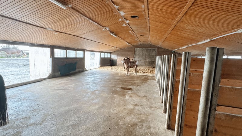 Dieses einzigartige Anwesen in Dischingen präsentiert sich als seltene Gelegenheit, ein großzügiges, vollständig arrondiertes Reitanwesen mit historischem Wohnhaus, umfangreichen Wirtschaftsgebäuden, professioneller Reitinfrastruktur und ertragreicher Photovoltaikanlage zu erwerben. Der Hof vereint den Charme eines Wohnhauses aus dem 19. Jahrhundert mit moderner Sanierung, hoher funktionaler Ausstattung und wirtschaftlich attraktiven Einnahmequellen. Die direkt zusammenhängenden Flächen bieten optimale Voraussetzungen für professionelle Pferdehaltung, Zucht-, Ausbildungs- oder Rehabilitationsbetriebe und gewährleisten gleichzeitig ein hohes Maß an Privatsphäre, Ruhe und Betriebseffizienz. Mit einer Infrastruktur für bis zu 30 Pferde, mehreren Stallbereichen und unterschiedlichen Haltungsformen, Reitplatz, Longierzirkel sowie großzügigen Heu- und Strohlagern erfüllt das Anwesen höchste Anforderungen an einen modernen Pferdebetrieb. Die leistungsstarke Photovoltaikanlage mit außergewöhnlich hoher Einspeisevergütung stellt eine zusätzliche, attraktive Einnahmequelle dar und unterstreicht die wirtschaftliche Zukunftssicherheit des Gesamtobjekts. Der Vertrag läuft noch 4 Jahre, dann kann auf eigene Stromversorgung umgestellt werden. ________________________________________ Grundstück & Flächen Gesamtfläche (arrondiert): • ca. 4,5 ha Flächenübersicht: • ca. 3,7 ha Eigentumsfläche • ca. 1,3 ha arrondierte Weidefläche (optional pachtbar, späterer oder auch sofortiger Kauf möglich)) • ca. 2,9 ha Mähwiese (optional pachtbar) • ca. 6,1 ha Ackerfläche (optional pachtbar) Grundstück Wohnhaus: • ca. 2.946 m² Alle Weide- und Koppelflächen sind direkt am Hof gelegen, vollständig arrondiert und vom Aktivstall aus unmittelbar zugänglich. ________________________________________ Wohnhaus Baujahr: ca. 1840 (1. OG später errichtet) Sanierung: 2009 Wohnfläche gesamt: ca. 240 m² Struktur: • Zwei Wohneinheiten à ca. 120 m² Ideal geeignet für Mehrgenerationenwohnen, Kombination aus Betriebsleiter- und Privatwohnung oder teilweiser Vermietung. Ausstattung & Details: • Teilunterkellert • Holzofen in der Küche Erdgeschoß • Fenster mit 2-fach-Verglasung • Gas-Zentralheizung • Fußbodenheizung im Badezimmer Erdgeschoß • EG Badezimmer mit Badewanne und bodentiefer Dusche, WC abgetrennt • Abgehängte Decken mit integrierten Deckenspots • Schlafzimmer mit Tageslicht • Erdgeschoss mit originalem Sandstein- und Holzboden • Küche mit separater Speisekammer • Kein Denkmalschutz ________________________________________ Stallungen & Pferdehaltung Aktivstall / Liegehalle • Aktivstall mit Liegehalle • Platz für ca. 25 Pferde in Gruppenhaltung • Sandfläche im Außenbereich zum Spielen und Wälzen • Fressstände zur Fütterung • Heuraufen • Vielfältige Beschäftigungsmöglichkeiten (z. B. Holzelemente) • Paddocktrail rund um die Koppeln mit befestigtem matschfreien Unterbau. Vlies, darauf ca. 20 cm Kies • Paddock im Stallbereich: Drainagen, Vlies, 20-30 cm Kies • Zwei Weidehütten vorhanden • Möglichkeit zur Trennung einer separaten Gruppe mit Paddock, Weidehütte und direktem Koppelzugang Stallgebäude Indoor • Innenboxen: 4 Boxen (können zu Paddockboxen umgebaut werden) • Paddockboxen: 2 Boxen • Beheizte Tränke mit Zirkulationspumpe • Warmwasser im Stall • Sattelkammer und separate Futterkammer • Aquatrainer mit vollständig zugänglichem Technikraum • Lagerflächen für Heu und Stroh (ca. 300 Quaderballen) • Elektrischer Stapler auf dem Heuboden vorhanden ________________________________________ Reitanlagen Reitplatz: • Maße: 22 × 44 m • Belag: Hippotex (Teppich-Schnitzel) • Drainage vorhanden • Ganzjährig nutzbarer Allwetterreitplatz Longierzirkel: • Durchmesser: 16 m • Boden: Sand-Späne-Gemisch • Drainage vorhanden ________________________________________ Bergehalle mit Anschleppung • Zufahrt von außen oder über Treppe • Ausbaubar als Heuboden oder zusätzlicher Stauraum • Garage für große Fahrzeuge und Maschinen • Werkstattbereich • Anschleppung für Traktor und Anhänger ________________________________________ Photovoltaikanlage • Leistung: ca. 160 kWp • Inbetriebnahme: 2009 • Einspeisevergütung: ca. 0,40–0,45 €/kWh im Durchschnitt (noch 4 Jahre) • Eigentumsanlage, im Kaufpreis enthalten • Dächer im Zuge der Installation vollständig erneuert (Sandwichplatten, Wohnhaus mit Dachziegeln) Die Photovoltaikanlage generiert aufgrund der hohen Vergütung außergewöhnlich attraktive und stabile Einnahmen. ________________________________________ Besonderheiten • Vollständig arrondiertes Betriebsareal • Historisches Wohnhaus mit moderner Sanierung • Professionelle Infrastruktur für bis zu 30 Pferde • Aktivstall- und Boxenhaltung kombinierbar • Hochwertiger Reitplatz und Longierzirkel • Großzügige Heu- und Strohlager • Aquatrainer vorhanden • Erhebliche Zusatzerträge durch Photovoltaikanlage • Bau einer Reithalle nach Abstimmung mit der Gemeinde möglich ________________________________________ LAGE Das Reitanwesen befindet sich in ruhiger, ländlicher Umgebung und verbindet eine naturnahe Lage mit sehr guter regionaler und überregionaler Verkehrsanbindung. Trotz der idyllischen Lage sind wichtige Ortschaften, Städte und Verkehrsachsen schnell erreichbar, was den Standort sowohl für private Nutzer als auch für einen professionell geführten Pferdebetrieb äußerst attraktiv macht. Die Bundesstraße B466 ist nur wenige Fahrminuten entfernt und bietet eine direkte Anbindung an die umliegenden Gemeinden sowie an die Wirtschafts- und Pendlerzentren der Region. Über die B466 besteht ein komfortabler Zugang zur A7, einem der wichtigsten Nord-Süd-Autobahnkorridore Deutschlands. Dadurch sind Städte wie Ulm, Aalen, Heidenheim, Nördlingen und Donauwörth schnell erreichbar – ebenso wie wichtige Verbindungsstrecken zu den Ballungsräumen S