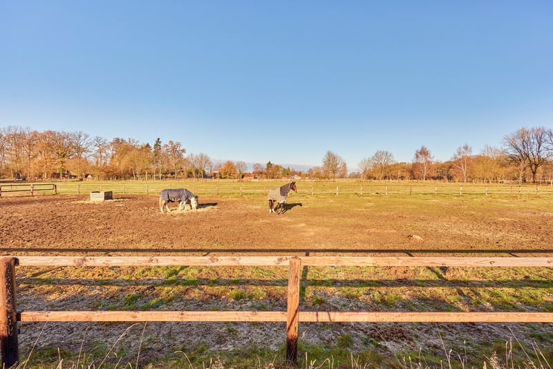 Paardenpension in Nedersaksen – gelegen in Hanstedt – te koop! Professionele faciliteiten voor de sport en comfortabel wonen voor het gezin! Objectbeschrijving: Deze goed onderhouden paardenpension in Hanstedt-Allenbostel biedt op een ca. 28.959 m² groot terrein ideale voorwaarden voor de professionele sport en het hele paardenfamilie. Het hoofdhuis uit 1982 beschikt over ongeveer 128 m² woonoppervlak, is gebouwd in prefab-bouw en voorzien van kunststof ramen met dubbele beglazing. In 2019 is het dak gerenoveerd, in 2023 zijn de badkamer en de keuken op de begane grond gemoderniseerd. Het gebouw heeft geen kelder; het zadeldak, de gevel en de tussenwanden zijn geïsoleerd. Het woonoppervlak wordt aangevuld door een te renoveren gastenverblijf uit 1900 van circa 60 m², eveneens met dubbele beglazing, betegelde en PVC-vloeren. De paardenstallen omvatten onderkomens voor in totaal 23 paarden. Direct grenzend aan de rijhal bevinden zich 13 boxen van het merk Röwer & Rüb met scharnierende fronten, twee poetsplaatsen met rubbermatten, een wasplaats en een zadelkamer. Daarnaast zijn er 10 moderne buitenboxen van het merk Drenoflex uit 2019. De rijhal uit 1982 meet 20 x 40 meter, is uitgerust met een Fairground-bodem, beschikt over een sproeisysteem en LED-verlichting. Aangebouwd is een gezellige ruiterhut (ca. 60 m²) met terras, houtkachel en een kleine keukenhoek, gebouwd in 1991. Voor training zijn er een zandrijbaan (35 x 75 m, 2019), een springweide op gras (35 x 75 m, 2019), een menwagen (voor 4 paarden, 2019) en een longeercirkel met een diameter van 25 m (2019). Het aanbod wordt aangevuld met een nieuwe hooilager, een machineberging, parkeerplaatsen voor bezoekers, vijf zandpaddocks (waarvan twee voor hengsten) en weilanden direct bij de boerderij. De paardenpension combineert comfortabel wonen met professionele omstandigheden voor paardenhouderij op een goed onderhouden terrein en biedt daarmee zowel voor particuliere paardenbezitters als voor commerciële doeleinden ideale voorwaarden. Uitrusting: Woonhuis: - Bouwjaar: 1982 (indeling in galerij) - Woonoppervlak: ca. 128,92 m² - Verwarming: elektriciteit, nachtspeicherovens (houtkachel aangeschaft, niet geïnstalleerd) - Bouwstijl: prefab-huis - Ramen: kunststof, dubbele beglazing - Dak: zadeldak, geïsoleerd - Renovaties: 2019 dakrenovatie, 2023 badkamer op de begane grond Gastenverblijf: - Bouwjaar: 1900 (geen plattegronden beschikbaar) - Woonoppervlak: ca. 60 m² - Verwarming: nachtspeicherovens - Ramen: kunststof, dubbele beglazing - Staat: dringend te renoveren Stal bij de rijhal: - Bouwjaar: 1982 - Boxen: 13 (Röwer & Rüb, scharnierende fronten voor machinale mestafvoer) - Putzplaatsen met rubbermatten, solarium - Wasplaats met warm water - 2 zadelkamers - 1 wasruimte voor paardendekens, gasten-wc met douche Buitenboxen: - Bouwjaar: 2019 - Paardenboxen: 10, 1 zadelkamer - Fabrikant: Drenoflex Rijhal: - Bouwjaar: 1982 - Afmetingen: 20 x 40 meter - Bodem: Fairground - Sproeisysteem aanwezig - Aansluiting met stalgang - Ruiterhut met terras en uitzicht op de rijhal, aangebouwd in 1991 (ca. 60 m², houtkachel, kleine keukenhoek) Reitbaan (zand): - Bouwjaar: 2019 - Afmetingen: 35 x 75 meter - Bodem: Fairground, gedraineerd - Omheining met heg Reitbaan (gras): - Bouwjaar: 2019 - Afmetingen: 35 x 75 meter - Hoogwaardige houten omheining aanwezig Menwagen: - Bouwjaar: 2019 - Aantal paarden: 4 Longeercirkel: - Bouwjaar: 2019 - Diameter: 25 meter - Bodem: Fairground, gedraineerd - Omheining aanwezig Hooilager: - Bouwjaar: 2019 - Afmetingen: 10 x 25 meter - Bodem: Beton Overige: - Machineberging - Mestafvoer via container - 5 zandpaddocks (waarvan 2 voor hengsten) en weilanden bij de boerderij (houten omheining) Locatie: Allenbostel is een dorp in de gemeente Hanstedt, gelegen in de Samtgemeinde Bevensen-Ebstorf in de Nedersaksische Landkreis Uelzen. Ondanks de landelijke ligging biedt het dorp een goede regionale verbinding. Via goed bereikbare snelwegen zijn Hamburg, Hannover en Braunschweig snel bereikbaar. De luchthaven Hannover-Langenhagen ligt op ongeveer een uur rijden en biedt uitgebreide nationale en internationale vluchten. Hanstedt-Allenbostel biedt een rustige, dorpsgebonden levenskwaliteit met een goede basisvoorziening in de omgeving. In de omliggende plaatsen, vooral Hanstedt, Ebstorf en Uelzen, zijn diverse supermarkten, bakkerijen, slagerijen en andere detailhandel en diensten beschikbaar. Grotere winkelcentra, gespecialiseerde winkels en een gevarieerd horeca-aanbod bevinden zich in de Kreisstadt Uelzen, die snel bereikbaar is. Gezinnen profiteren van een goed ontwikkeld onderwijs- en opvangaanbod. Kinderdagverblijven en basisscholen zijn in de nabije gemeenten goed bereikbaar. Voortgezet onderwijs zoals middelbare scholen, gymnasia en beroepsopleidingen zijn in Uelzen en Ebstorf te vinden en via schoolbusverbindingen goed bereikbaar. De medische zorg is eveneens verzekerd, met huisartsen, tandartsen en apotheken in de omliggende dorpen en in Uelzen. Daar zijn ook specialisten, fysiotherapie en het Helios Klinikum Uelzen voor uitgebreide medische zorg. Het leven in Hanstedt-Allenbostel wordt gekenmerkt door rust, natuur en een actieve gemeenschapszin. Verenigingen, brandweerkorpsen en dorpsgemeenschappen zorgen voor een levendige samenleving. De landelijke omgeving biedt talrijke mogelijkheden voor recreatie zoals fietsen, paardrijden en wandelen in de natuur. Energiebewijs: Belangrijkste energiebron: elektriciteit Verbruiksspecificatie Eindenergiebehoefte: 180,05 kWh/(m²*a) Energieprestatieklasse: F Bouwjaar volgens energieprestatiecertificaat: 1982 Aanvullende informatie: Ongeoorloofd betreden van de paardenpension buiten bezichtigingen met de makelaar Fetter Immobilien wordt door de eigenaren niet gewenst en verboden! Bij notariële akte wordt een commissie van 3,57% van de koopprijs inclusief btw in rekening gebracht, te betalen bij het sluiten van de notariële koopovereenkomst. Een gedetailleerde brochure