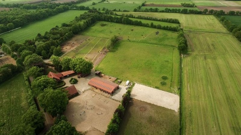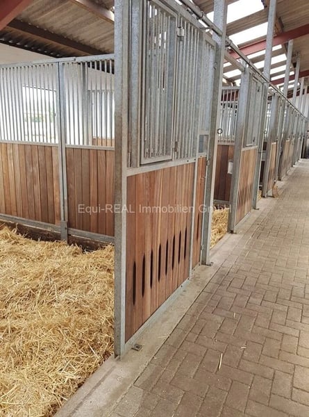 Residential building built in 2001, approximately 150m2 2 stables built in 2008 and 2000 24 horse boxes two open stables additional outbuildings such as hay storage, machinery shelter, and workshop large carports, two riding arenas round pen 80,000 m2 of pastureland directly adjacent to the property Everything is structured, efficient, and well-maintained Mature tree population on the property. If the operation continues in its current form, all prerequisites for submitting an application for an indoor riding arena are present. Address: DE-26655 Westerstede Total area approx.: 80,000 m² Main area approx.: 150 m² Plot size approx.: 80,000 m² Quality of equipment: upscale Year of construction: 2001 Heating: central heating Type of fuel: gas Energy certificate type: demand certificate Final energy demand for heating: 96 kWh/(m²*a) Year of construction according to energy certificate: 2001 Price: €1,400,000 Commission: Upon conclusion of a purchase contract, a brokerage/commission fee of 4.76% including 19% VAT on the purchase price will be due from the buyer. Note: The information provided by us is based on statements from the seller. No guarantee or liability can be assumed for the accuracy and completeness of the information. A prior sale and errors are reserved. Terms and Conditions: We refer to our General Terms and Conditions. By further utilizing our services, you declare your knowledge and consent.