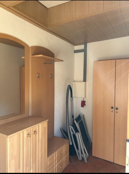 Location & Surroundings: We are renting a cozy apartment on our breeding and boarding horse farm. The central location as well as the close proximity to important daily necessities such as shopping facilities, doctors, or pharmacies can be reached within a few minutes. Apartment: - Open living and dining area with fitted kitchen - Bathroom with shower - Quiet location, rural ambiance - Pets not allowed Special Features: - Possibility to bring your own horses (for an additional fee, by arrangement) - Living directly on a well-maintained horse farm Costs: Cold rent: €500 Additional costs: €150 Deposit: €1500 Miscellaneous: The apartment is suitable for individuals who value a quiet and animal-friendly environment. Contact: If you are interested or have any questions, we look forward to your call! Tel: 01759167174
