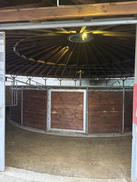 Longierzirkel für Pferde, gemauert, überdacht mit Quarzsandboden