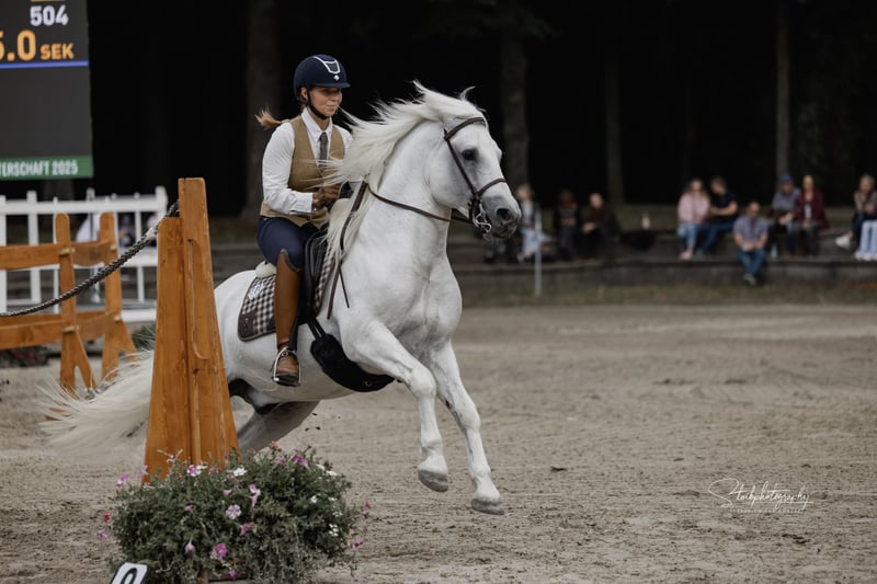 Ufano des Iscles is an impressive very powerful Camargue stallion. It was still certified at the Mas de la Cure in the Camargue and imported by us in 2014. His certification was confirmed in the Rheinische Pferdestammbuch for Germany and it is said to be of great importance for German breeding. With us, the first foal is very promising and will remain and be trained as a basket candidate. Ufano is trained in dressage up to S, jumps clean 2-s and 3 - he changes and is currently working on the 1-man changes. Piaffe and Passage he shows committed and clean. He works on the cattle, goes flawlessly also challenging trail courses and is intrepid in the terrain. At the fairs and shows, he shows himself to be nerve-racking and pays great attention to his herd. Due to its baroque mass, it is an impressive appearance. Nevertheless, the horse is fine at the aids, very committed and also agile. In the Camargue he registered foals in the year 2013. We have chosen our "Brummer" especially for the already very large bred broodmares in order to get a successful mixture of beauty and original robustness of the Camargue horse. Ufano is always a somewhat anxious-looking horse who works diligently, but is also determined if something is not demanded correctly. Very impeccable in character.