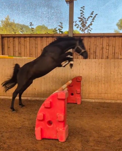 Noble Arabian Stallion (OX) in Stunning Black Roan Color Seeks a New Role – Breeding Gem with Heart and Character! We are offering our Arabian stallion Saamar OX, who is looking for a new environment or a completely new challenge. This impressive 10-year-old black roan stallion (OX) combines charisma, nobility, and bravery in perfect harmony. He has a gentle manner, is always attentive and respectful, yet brave and clear-minded – a horse with heart and presence. Although unridden, he shows a willingness to learn and is very people-oriented, both in ground work and free jumping, with a character that inspires trust and seeks closeness. He is also handled daily by a 12-year-old girl and consistently remains gentle and manageable in her care. As a breeding stallion, he impresses with his pure Arabian pedigree (OX) and passes on type, expression, and inner strength. His rare black roan color makes him a true standout in Arabian breeding. All of his foals are robust and exhibit a completely clear-headed temperament.