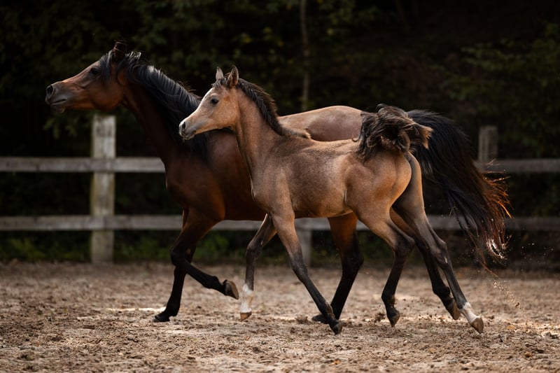 BH Macan von A Magic Man of Kossack aus der HF Maisah ist ein russisch gezogener Vollblutaraberhengst vom 17.04.2025. Vom VZAP wurde er mit der Fohlenprämie ausgezeichnet. Er überzeugte bei unserem Hoftermin die Vertreterinnen des Zuchtverbandes durch seine Präsenz und seinen Charme. Macan ist ein Hengstjährling mit sehr viel Ausstrahlung und toller Aufrichtung, er liebt es, sich zu präsentieren. Er besticht durch sein solides Fundament und schwungvolle, raumgreifende und sehr taktreine Bewegungen. Jetzt schon zeichnet sich ab, dass Macan sowohl vom Wesen als auch von seinen qualitativen Merkmalen ein vielseitig einsetzbarer Partner unter dem Sattel sein wird. Macan wird Schimmel und hat jetzt schon ein feines braun-silbergraues Fell. Macan ist dem Menschen zugewandt, sehr gelehrig und umgänglich. Der junge Vollblutaraber-Hengst ist halfterführig, kennt es angebunden zu sein, lässt sich überall anfassen, gibt die Hufe problemlos und ist sehr geduldig beim Schmied. Auch das regelmäßige Entwurmen ist selbstverständlich. Er hat den ersten Sommer mit den anderen Fohlen, drei Jährlingsstuten und unseren Mutterstuten auf den Wiesen auf dem Borner Hof verbracht. Den Winter verbrachte er überwiegend auf dem Winterpaddock mit Offenstall, winterrungsbedingt zeitweise in einer großzügigen Laufbox. Wind, Regen, Sonne, Schnee usw. sind für sie kein Problem. Auch Kinder, Fahrzeuge, LKWs, Traktoren, Hunde, Rehe und vieles mehr kennt er und stört sich daran nicht. Macan wächst auf dem Borner Hof robust und mit intensivem Familienanschluss auf. BH Macan wäre bereit, in ein neues Zuhause zu ziehen und seinem neuen Besitzer viel Freude zu bereiten. Wenn BH Macan Ihr Interesse geweckt hat und Sie ihn gerne einmal kennenlernen möchten, würden wir uns über eine Nachricht zur Terminabsprache und ein persönliches Kennenlernen freuen. Aktuelle Bilder folgen nach dem Fellwechsel. www.bornerhof.de