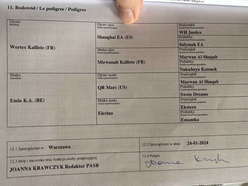 Emkalister M - Dwuletni Ogier Arabski Urodzony 10.05.2023 Trenowany na lonży, regularnie werkowany, podaje ładnie wszystkie nogi. Wzrost 145 cm. Filmiki z ruchu mogę podesłać w wiadomości prywatnej lub na SMS/whatsapp. Rodowód na zdjęciach. Wybitne pochodzenie, w jego rodowodzie znajdują się słynne konie arabskie, takie jak: Wortex Kalliste, Shanghai E.A. i Marwan Al Shaqab. Przedostatnie zdjęcie ojciec, ostatnie zdjęcie matka. Ojciec: Wortex Kalliste - znany ogier arabski, międzynarodowy champion, Pokazy: - Qatar 1st Title Show Gold Champion -European Gold Champion Junior + Senior -Scottsdale International Gold Champion -Al Khalediah Festival Bronze Champion -World Cup - Las Vegas 2 years old Champion & Silver Supreme Champion -World Breeders Cup - Chantilly Silver Champion -Top Ten World Championship