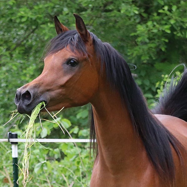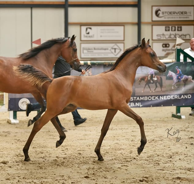 A Kanz of Kossack ist unser vielversprechender Hengst, geboren 2016 - 1,63m, von dem weltbekannten Kanz Albidayer (von Ajman Moniscione) aus unserer Elitestute Ariel (von Aja Shakakhan). Ein Kanz of Kossack hat bereits einen außergewöhnlichen Turnierrekord vorzuweisen: zweifacher nationaler Champion, Silber bei der Europameisterschaft der Züchter und viele weitere Goldmedaillen bei internationalen Schauen in Holland und Belgien! Er ist auch unter dem Sattel ausgebildet und zeigt ein extremes Talent für die Dressur, indem er bereits zwischen den Warmblutpferden auf Z-Dressur-Niveau gewonnen hat! Ausstellungsergebnisse von A Kanz of Kossack: - Bronzemedaille Champion Jährlingshengste, Tulip Cup, Int. B-Show, Ermelo, Holland 2017 - Goldmedaille Champion Jährlingsfohlen und BEST OF SHOW, Arabian Horse Weekend, Nat. Show, St. Oederode, Holland 2017 - Silbermedaille Champion Jährlingshengste (92,00 Punkte), AHO Breeders' Championship Europe, Chantilly, Frankreich 2017 - Goldmedaille Champion Jährlingshengstfohlen und Niederländisches Bestes gezüchtetes Pferd, Niederländische Meisterschaften, Ermelo, Holland 2017 - Top 5 Jährlingshengste, Arabian Futurity Europe, Aachen, Deutschland 2017 - Goldmedaille Champion Junior Colts, Europaschau, Brügge Arabian Horse Event, Belgien, 2018 - Goldmedaille Champion Junioren Hengstfohlen, Eurozone Cup, Exloo, Holland 2018 - Goldmedaille Champion Senior Stallions mit der höchsten Punktzahl der Show, Dutch Nationals, Exloo, Holland 2020 - WAHO-Trophy-Sieger 2023 Sportliche Ergebnisse von A Kanz of Kossack: - Champion AVS Online Dressur Wettbewerb 2020/2021 - L1 Dressur Niveau - Gesamtsieger AVS Online Dressurwettbewerb 2020/2021 mit einer Durchschnittsnote von 71,4%. - Niederländischer Landesmeister L Dressur 2021 - Champion AVS Online Dressurwettbewerb 2021/2022 - M1 Dressur - Gesamtsieger AVS Online Dressurwettbewerb 2021/2022 mit einer Durchschnittsnote von 70,8%. - Prädikat Dressur - ECAHO Niederländischer Nationaler Meister Dressur 2023 - Master Niveau - Champion Hunter Pleasure - Internationale Leistungsklassen Belgien Nationals 2023 - Champion Classic Pleasure - Internationale Leistungsklassen Belgische Meisterschaften 2023 - Derzeit erfolgreich in der Z2-Dressur und qualifiziert für die ZZ-Leicht-Dressur bei den Warmblütern Decktaxe für die Decksaison 2025: Euro 1.250,- ex. MWST. (Zuchtgebühr für andere Rassen auf Anfrage)