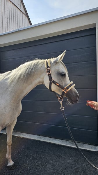 Murjiana S is an elegant 13-year-old purebred Arabian mare with an exceptionally smooth trot. Unfortunately, she is looking for a new home as her owner can no longer ride due to health reasons. Murjiana has a very open and friendly temperament; once she has built a trusting relationship with her new owner, she will become very affectionate. She has been ridden English-style so far. Thanks to her excellent pedigree, Murjiana can also be used for breeding purposes. Pedigree: Sire: El Chall WR Dam: Moonlight Kiss (sire of dam: MV Ekstern) No sales outside the country; she is only available to a very good home. Please feel free to contact me for further questions or to arrange a viewing. Price non-negotiable.