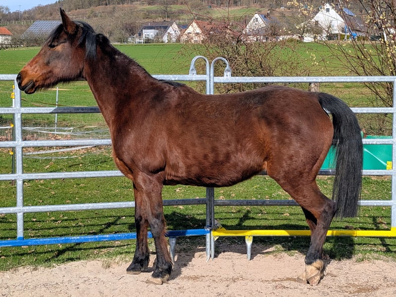 Unsere Wampi, Vandy, fällt dem Abitur meines Sohnes zum Opfer. Um ihrer momentan bodenlosen Unterbeschäftigung zu entgegnen, soll sie nun an eine(n) Distanzreiter*in, die aktiv reitet und selbstverständlich VDD Mitglied ist. Wir stellen sie Standort ungebunden (innerhalb Deutschlands) einem erfahrenen Menschen mit Herz und Verstand zur Verfügung. Sie hat noch einige gute Jahre vor sich, die sie nicht auf der Koppel vertrödeln soll! Vandy WILL vorwärts und läuft mit Ausdauer, Kampfgeist und Temperament, welches wir mit den Jahren in gut kontrollierbare Arbeitsmoral einbetten konnten. Unter dem falschen Reiter und ohne ruhige, aber konsequente Führung wird sie zu einem Geschoss, sodass der Opa Dormane sich im Grabe umdrehen würde- alle, die DIESEN Namen nicht im Distanzsport verorten können, sollten aufhören zu lesen... Aufmerksam, wach, sicher und erfahren im Gelände, entspannt am Platz, wobei hier dringend die stabile Anlehnung ins ruhige Abwärts und weniger ins ungeduldige Vorwärts in den Fokus gehört, ist unsere Wampi eine ehrgeizige, liebe, aber auch dominante Stute. Sie verlangt Konzentration und Reaktion von ihrem Reiter. Am langen Zügel gehen ist dann problemlos, wenn man sich ihren Respekt und ihr Vertrauen erarbeitet hat. Zu herrisch und sie wird richtig grantig, zu weich und sie verliert den Gehorsam, ist die Balance aber gefunden, gibt sie wirklich alles für ihren Menschen. Bist du das? Dann melde dich bei uns!