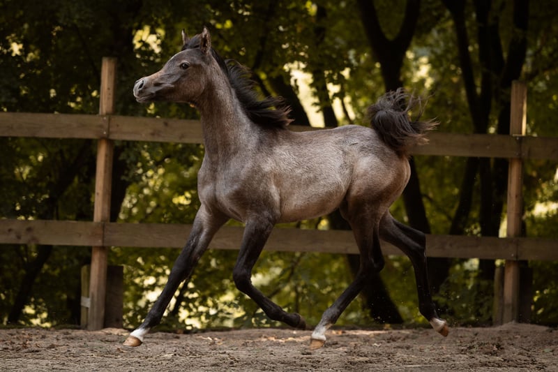 BH Meliah is a Russian-bred purebred Arabian mare, awarded the foal premium by VZAP in 2025, and is now seeking a new home. She is a very typy young mare with a commanding presence, featuring a solid foundation and lively, expressive, ground-covering movements. Meliah will turn grey and already has a fine silver-gray coat. This little lady is very curious, trusting towards humans, and approaches everything asked of her in a playful manner. She loves to explore new things, is not at all spooky, and will undoubtedly become a reliable and trustworthy riding horse. The purebred Arabian filly BH Meliah is halter-trained, accustomed to being tied up, and is comfortable being handled everywhere. She easily gives her hooves and is very patient when being trimmed. Regular deworming is of course routine for her. She spent her first summer on the pastures with other foals, yearling mares, and our broodmares. Wind, rain, sun, and other weather are no problem for her. She is familiar with children, vehicles, trucks, tractors, dogs, deer, and much more, and remains unfazed. She has grown up robustly on Borner Hof with a strong family connection. BH Meliah is ready to move to a new home and bring much joy to her new owner. She could also stay with us at Borner Hof for further training and development until October 2027. If BH Meliah has caught your interest and you would like to get to know her personally, we would be happy to receive a message to arrange a viewing and meet her in person. https://bornerhof.de/2025/bh-meliah/