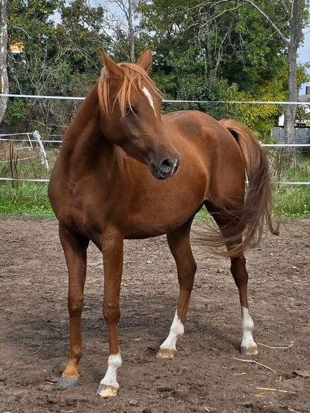 🌟 Seltene Gelegenheit: Reine russische Vollblutaraber Stute aus dem legendären Gestüt Tersk 🌟 Mit Melarosa bietet sich die seltene Chance, eine rein russische Vollblutaraber Stute direkt aus dem Gestüt Tersk zu erwerben. Da selbst Tersk inzwischen den Großteil seiner klassisch russischen Pferde veräußert hat, werden Stuten dieser Blutlinie künftig zu echten Raritäten. Ihre Mutter Germiona Tersk entstammt der berühmten Madeyra – Vollschwester des legendären Madiar (Drug). Die Mutterlinie geht auf die herausragende Amunitia zurück. Germiona wurde 2021 von Faber Arabians direkt aus Tersk importiert, tragend von dem beeindruckenden Hengst Angleter – Nationalsieger und Sohn des bekannten Namaz. Melarosa befindet sich in einem idealen Alter, um im Frühjahr entweder behutsam mit der Arbeit zu beginnen oder direkt in der Zucht eingesetzt zu werden. Sie ist ideal für Liebhaber der russischen Linie und für hochwertige Zuchtambitionen.