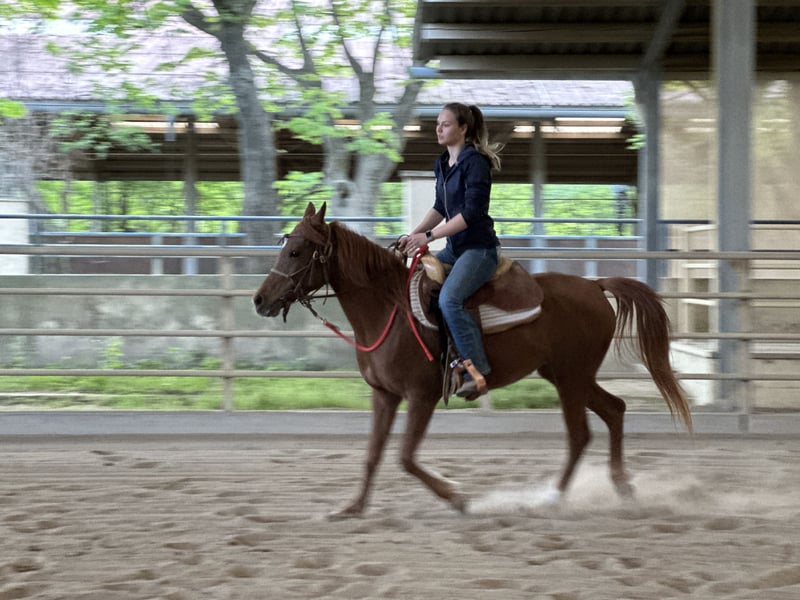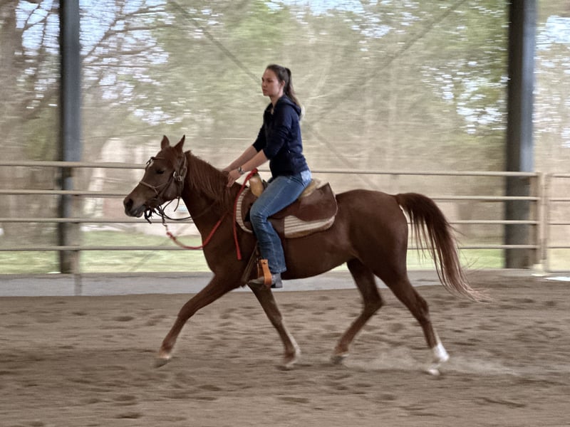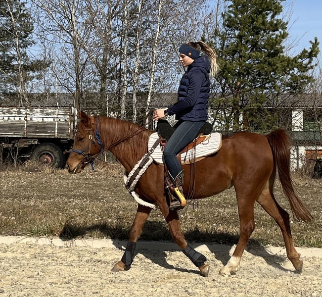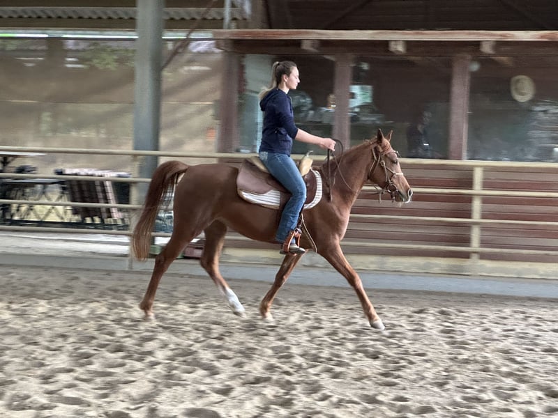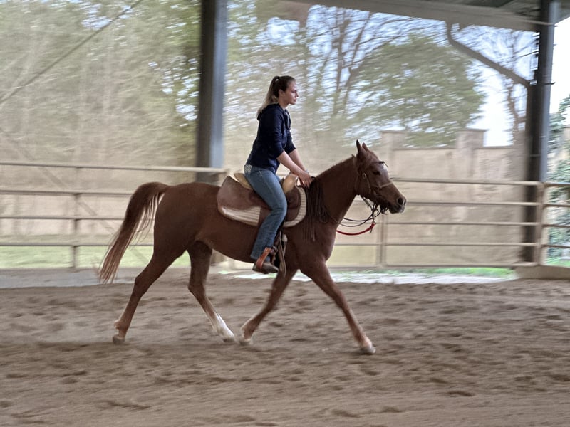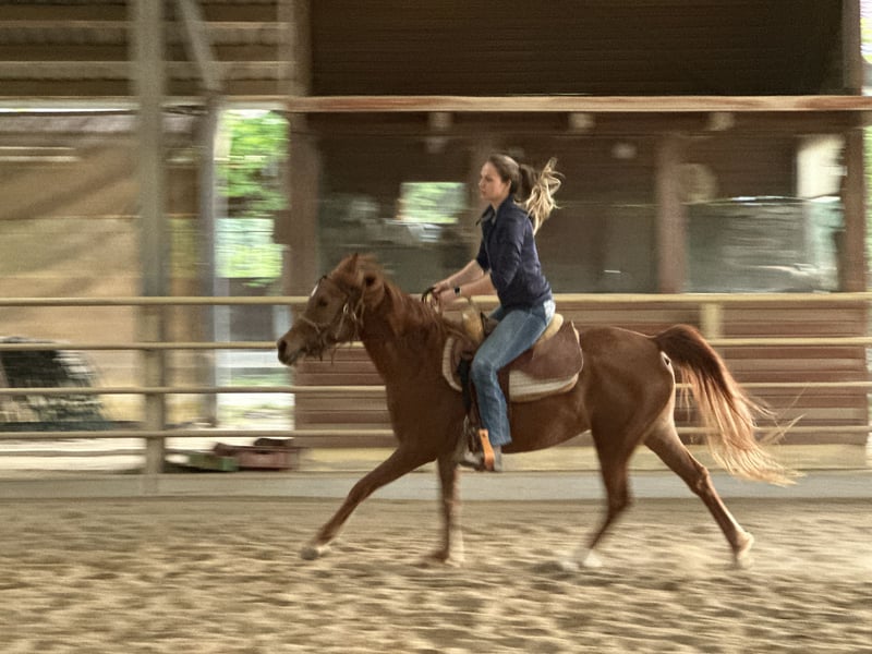 With a heavy heart, I am parting with my asil Arabian mare Ezza al Rius due to time constraints and family reasons. She combines an exceptionally friendly and approachable nature with high intelligence and a lot of "go." She learns very quickly and enjoys working and being challenged. She has a strong "will to please" and responds very sensitively to aids. Furthermore, she has beautiful, expansive movements. She has been professionally started under saddle and is now looking forward to her person with whom she can further develop. Like Thoroughbred Arabians in general, she is not a beginner's horse. An ideal rider would have experience with Thoroughbreds. Although Ezza has been started in Western riding, we can also very well imagine her under an English saddle or endurance saddle. She comes from an endurance line and would therefore be suitable for both endurance rides and longer leisure rides.