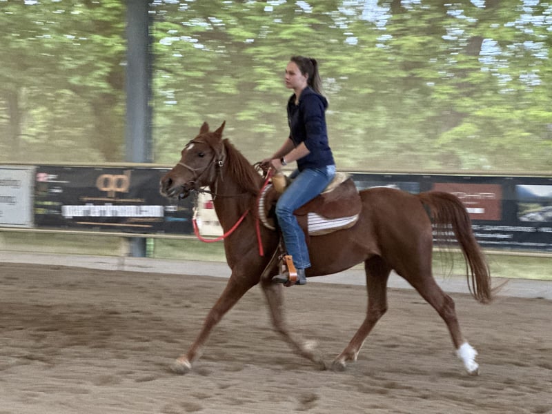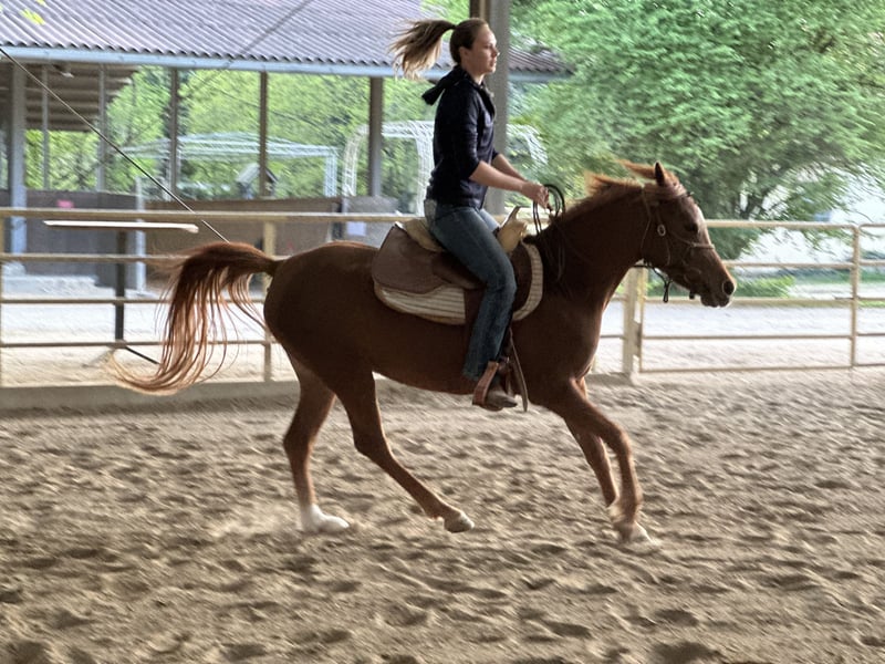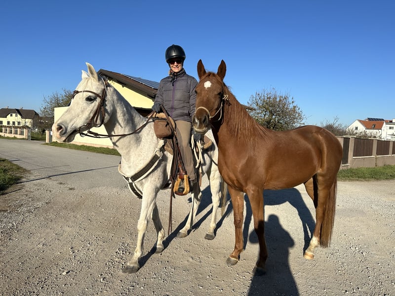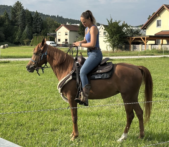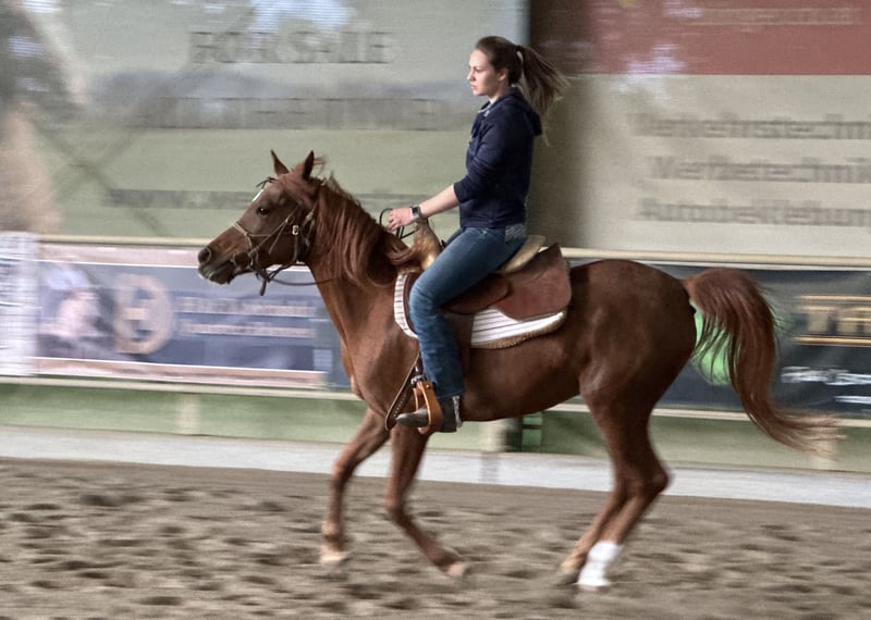 Schweren Herzens trenne ich mich von meiner asilen Araberstute Ezza al Rius. Sie vereint ein ausgesprochen freundliches und zugewandtes Wesen mit hoher Intelligenz und sehr viel "Go". Sie lernt sehr schnell und möchte gerne arbeiten und gefordert werden. Sie hat einen hohen "will to please" und reagiert sehr feinfühlig auf Hilfen. Darüber hinaus hat sie schöne raumgreifende Bewegungen. Sie wurde professionell angeritten und freut sich nun auf ihren Menschen, mit dem sie sich weiter entwickeln kann. Von der Bodenarbeit aus gesehen, ist sie ein absolutes Anfängerpferd und hat die besten Manieren im Stall. Sie ist stets freundlich und wohlerzogen, drängt und schubst nicht, bleibt brav hinten und ist sehr freundlich zu ihrem Stallgenossen. Sie fressen auch ohne Probleme vom selben Futtertrog (obwohl ein zweiter zur Verfügung ist). Im Offenstall kann auch meine kleine Tochter beide Pferde alleine betüteln, und man kann sich sicher sein, dass Ezza Acht gibt und keine schnellen Bewegungen macht. Wenn Ezza auf der Weide ist, kommt sie auf Zuruf herein. Wenn wir nach Hause kommen, kommt sie uns entgegen und begrüßt uns mit einem "Bussi" (eine Berührung mit dem Maul). Sie ist im Stall daher das absolute Familienpferd und hat ein toller Charakter. Eine Freundin fürs Leben. Beim Reiten merkt man, dass Sie aus einer Distanz- / Rennlinie stammt. Sie möchte gerne Laufen. Dies passt leider nicht zu unserem zweiten Pferd, einem alten gemütlichen Wallach und auch nicht zu unserer Art zu reiten (gemütliche kurze Spazierritte gemeinsam mit meiner kleinen Tochter oder meiner fast 80jährigen Mutter). Wir können Ezza daher leider nicht in ihrem Bewegungsdrang gerecht werden, und suchen daher einen Platz für sie, der besser für Sie passt. Sie würde sich sowohl für Distanzritte, als auch für lange Freizeitritte eignen. Alternativ fühlt sie sich sicher auch als Beistellpferd in einer größerer Auslaufmöglichkeit wohl. Sie ist sehr menschenbezogen, daher wäre eine Bezugsperson für sie schön. Uns ist ein schöner Platz sehr wichtig, da sie uns sehr ans Herz gewachsen ist.