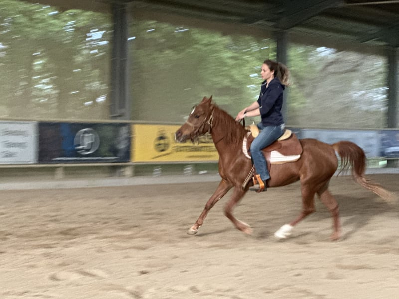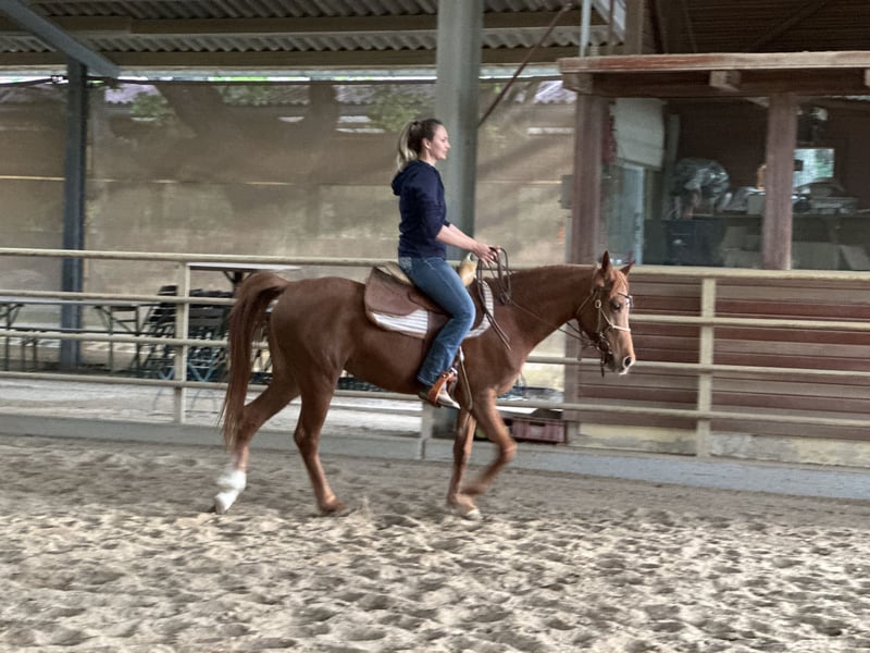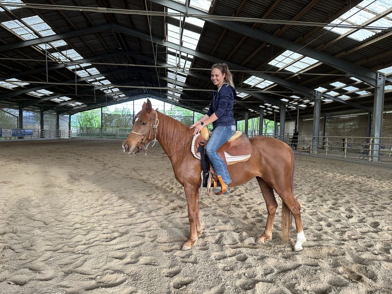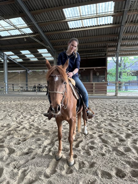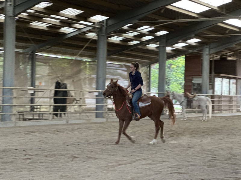 C'est avec un cœur lourd que je me sépare de ma jument arabe asil Ezza al Rius en raison d'un manque de temps et de raisons familiales. Elle allie une personnalité extrêmement amicale et ouverte à une grande intelligence et beaucoup d'énergie. Elle apprend très vite et souhaite travailler et être stimulée. Elle a un fort "will to please" et réagit de manière très sensible aux aides. De plus, elle a de beaux mouvements amples. Elle a été débourrée professionnellement et attend maintenant son humain avec qui elle pourra continuer à se développer. Comme c'est généralement le cas avec les pur-sangs arabes, elle n'est pas un cheval pour débutants. Un cavalier ayant déjà de l'expérience avec des pur-sangs serait idéal. Bien qu'Ezza ait été débourrée en western, nous pouvons également très bien l'imaginer sous une selle anglaise ou une selle de randonnée. Elle provient d'une lignée de distance et serait donc adaptée tant pour des randonnées de distance que pour des sorties de loisir plus longues.