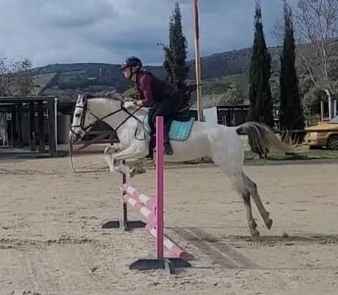 This gorgeous boy is 140cm and 9 years old. He is a true all rounder and could excel in multiple disciplines. Currently he has good flatwork, has successfully competed at showjumping 0.80 meters. Has hacked, and would have good potential for endurance. On the ground he is sweet to handle, affectionate and has good manners. Would suit a competent older child/teenager or small adult. Este precioso caballo mide 140 cm y tiene 9 años. Es muy versátil y podría destacar en varias disciplinas. Actualmente tiene buen trabajo en pista, ha competido con éxito en salto de obstáculos de 0,80 metros, ha salido a pasear y tiene un gran potencial de resistencia. En tierra es muy dócil, cariñoso y tiene buenos modales. Sería ideal para un niño mayor/adolescente con experiencia o un adulto de baja estatura.