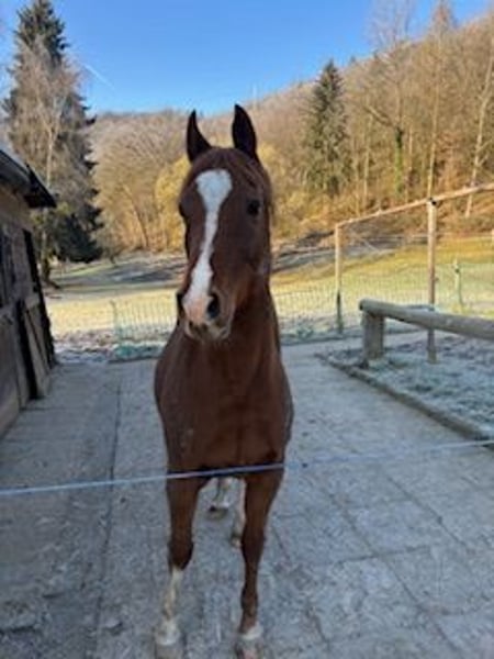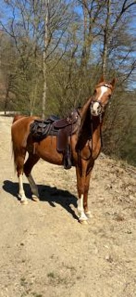 Due to personal circumstances, I am seeking a new home for my prince. I have set the price as negotiable because the future accommodation and the new owner are my top priorities. Description: Full-Arabian, chestnut gelding, 15.3 hh, with a life number passport. Open stable horse (mandatory for surrender) – no permanent box confinement – Outdoors horse 24/7 pasture. Manor is very people-oriented, affectionate, curious, intelligent (always knows where the treats are), and sensitive. He is sure-footed in the terrain and prefers to stand still rather than rush headlong. I ride him bitless in Western style and wish for him to continue with this riding method. He responds to voice commands, light aids, and always considers my German Shepherd when hacking out. Riding away from the herd has never been an issue. On the pasture, he has been kept comfortably with a gelding and occasionally with a mare. Saddle and accessories can be purchased additionally.