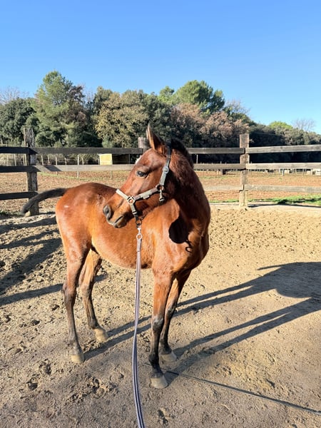 Potro de 3 años, Poni C, con un carácter noble y equilibrado y un físico muy bien conformado. Destaca por su buena estructura, movimientos correctos y una presencia que no pasa desapercibida. Es un poni muy versátil, con un futuro prometedor tanto para ocio, competición en cualquiera de sus disciplinas o rutas, adaptándose fácilmente a distintos tipos de trabajo. Actualmente ya está en la cuerda, mostrando buena actitud y disposición al aprendizaje. Se deja tocar sin problema por todo el cuerpo, es muy cariñoso, cercano y confiado con las personas, lo que lo convierte en un compañero ideal tanto para adultos como para niños con cierta experiencia. Vive en manada, por lo que está bien socializado, pero se adapta perfectamente a la vida en cuadra sin mostrar estrés ni malos hábitos. Un poni con buena cabeza, fácil de manejar y con una base excelente para seguir formándolo a gusto de su futuro propietario.