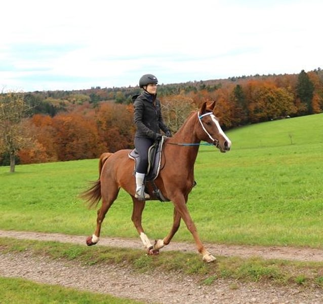 Jazz ist nicht nur ein wunderschöner junger Araber mit einer charmanten Persönlichkeit, sondern aufgrund seiner hervorragenden Abstammung (Persik) ist er geradezu prädestiniert für den Distanzsport. Er braucht bei neuen Menschen etwas Zeit bis er sich vollständig öffnet, hat er aber einmal Vertrauen gefasst ist er 100% cool und absolut zuverlässig. Er wurde sehr spät eingeritten, so hatte er genügend Zeit körperlich und mental zu reifen. Aktuell wird er überwiegend im Gelände geritten und daran hat er auch am meisten FreudeJ in Frankreich ist er im Herbst bereits einen kleinen Distanzritt gelaufen den er mit den besten Pulswerten aller Starter abgeschlossen hat. Er ist auf riesigen, bergigen Weiden in einer großen Herde aufgewachsen und ist natürlich bestens sozialisiert. Ärger geht er lieber aus dem Weg freut sich aber immer wenn er zum spielen aufgefordert wird. Wer auf der Suche nach einem korrekten, außergewöhnlichen, unkomplizierten und sportlichen Araber ist sollte nicht lange zögern:)