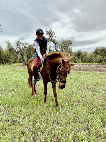 Vendo Cavallo Arabo – DREAD RUSPINA (2019) Maschio castrato, sauro, altezza 1,55 m al garrese. Genealogia: Frida Di Monte Santo x Taajer. Documenti ( A.N.I.C.A.) e vaccini in regola. Senza vizi, dal carattere affidabile e collaborativo. Adatto ai trekking, si dimostra instancabile, resistente e generoso, con buone potenzialità anche per il mondo dell’endurance. Richiede un cavaliere con minimo di esperienza, motivato a crescere e lavorare con lui, instaurando un percorso condiviso. Ich verkaufe Araber Pferd - DREAD RUSPINA (2019) Männlicher Wallach, sorrel, Widerristhöhe 1,55 m. Genealogie: Frida Di Monte Santo x Taajer. Dokumente und Impfungen in Ordnung. Ohne schlechte Angewohnheiten, zuverlässiger und kooperativer Charakter. Geeignet für Trekking, ist er unermüdlich, robust und großzügig, mit gutem Potenzial auch für Ausdauerreiten. Er braucht einen Reiter mit einem Minimum an Erfahrung, der motiviert ist, mit ihm zu wachsen und zu arbeiten, um einen gemeinsamen Weg zu finden.