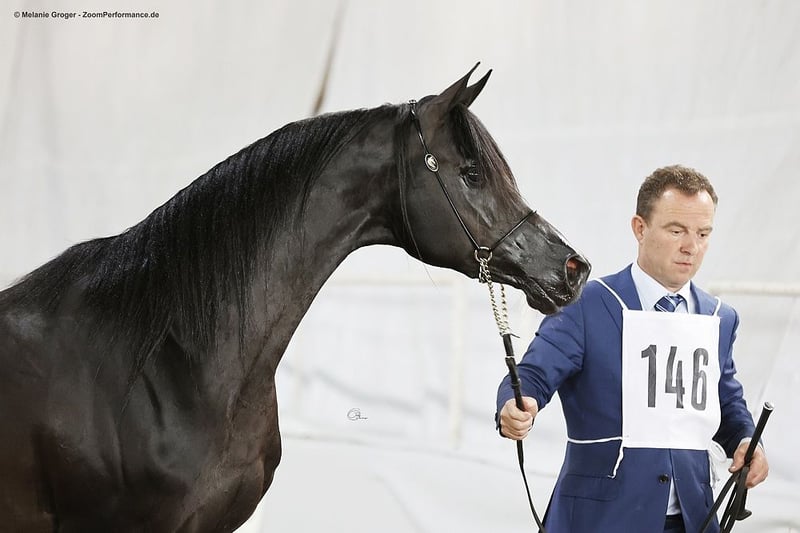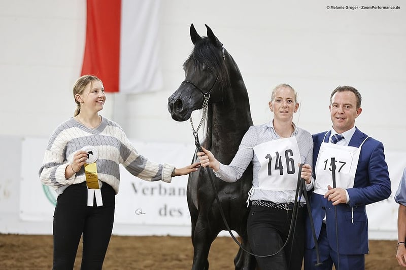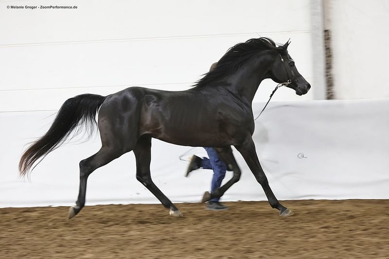 "Pueblo" è un bellissimo e elegante stallone nero con una struttura corretta e andature eccellenti. Pueblo è stato importato da noi come stallone di 3 anni da Janow Podlaski ed è stato utilizzato per la monta (è stato registrato con il nastro d'oro). Lo scorso anno abbiamo deciso di offrirgli una vita probabilmente migliore come castrone e cavallo da sella. Ora viene nuovamente lavorato regolarmente sotto sella e si presenta bene e in modo ordinato sia a mano che sotto sella. Si muove nelle tre andature di base sia in pista che nel terreno. Attualmente è in paddock con un castrone e la convivenza sta andando molto bene. Naturalmente, Pueblo ha i documenti e il passaporto equino ed è regolarmente sverminato e vaccinato.