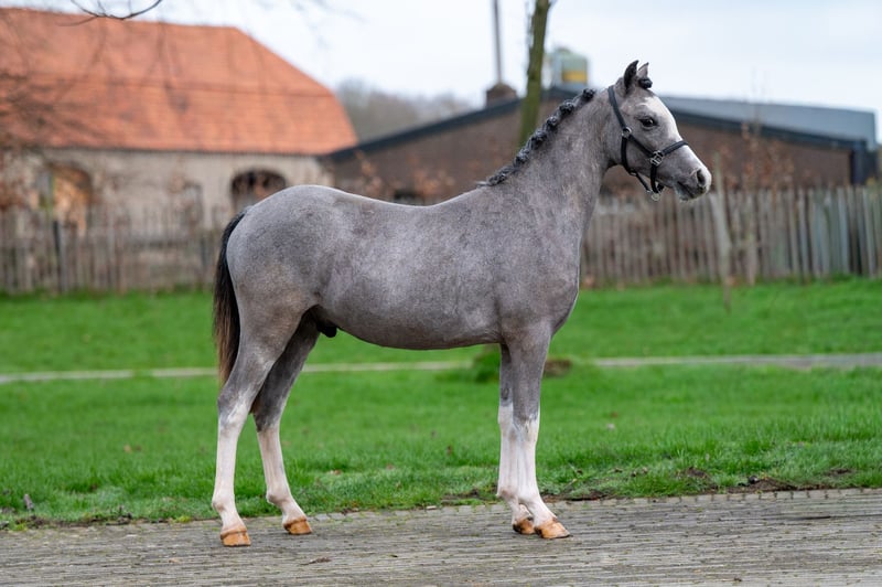 Ein wunderschöner Welsh-Jährling mit einer Farbe, die Sie stets begeistern wird. Dieser Hengst zeigt eine gute Bewegung und demonstriert bereits eine ausgezeichnete Körperhaltung beim Springen.