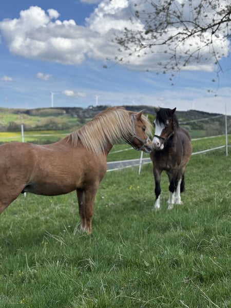 Verkaufe Welsh A Hengst Geboren: Mai 2022 Farbe: Fuchs Größe: 116cm (wächst noch) Als Saugfohen prämiert Mutter: Erlensee Joy - Welsh A - Hauptstutbuch S1 Vater: Voermanhof Zenit - Welsh A - HB 1 Hat volle Papiere und Eigentumsurkunde * Er kennt das Fohlen ABC * Sehr gute und schöne GGA * Lasst sich auch ohne anbinden oder Halftern in der Herde wie auch in der Box Putzen * Kennt Box (Im Winter) * Kennt Offenstall (Im Sommer) * Steht problemlos neben Stuten * Immer händelbar auch von Kindern Führ- und Putzbar * Lässt sich Longieren * Kennt Sattel und Trense * Wird gerade vom Boden ans anreiten gearbeitet * Hört sehr gut auf Stimme * Sehr verkuschelt * Schmiede- und Verladefrom * Kennt und meistert Schrecktraining Er würde sich sehr über ein kennenlernen freuen Bei mehr Infos oder Interesse bitte melden