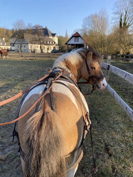 Poney stallion de 7 ans en coloration spéciale recherche une nouvelle famille 5 étoiles Né en mai 2018 Mère Shetland Pony, père Welsh Pony Sociaux, joueurs et bien dressés. Connaît la circulation routière, le maréchal-ferrant et les enfants plus âgés. Préfère aller en balade, aussi bien en main qu’en selle. Apprécie le travail à la longe et pourrait certainement devenir un bon poney de trait. Sans reines ni ekzem, marche pieds nus parfaitement. Ce qui est important pour moi dans sa nouvelle maison : Compagnie de poneys Stall ou pâturage quotidien en groupe Une personne de référence adulte Activité régulière Ce n’est pas un poney uniquement pour enfants ! Il s’agit d’un jeune mâle qui nécessite encore une formation, donc réservé à des personnes expérimentées. Plus d’informations sur demande.