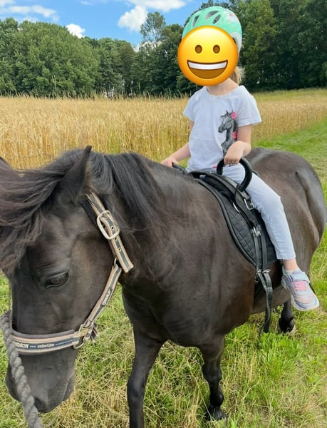 Our pony is looking for a new home, as she has been bullied by the larger mares for quite some time, which now sometimes requires us to separate her. She lives outdoors year-round with a paddock and pasture but is also familiar with stabling. She is very easygoing, strong-willed, affectionate, and friendly. Whether in a mixed herd or with only mares, she adapts well. She has experience with both. She has always been healthy, no signs of laminitis! Regularly dewormed, vaccinated, with teeth and barefoot care. She has a green passport and is microchipped. A place as a companion pony or as a lead-rein pony for children would be ideal.