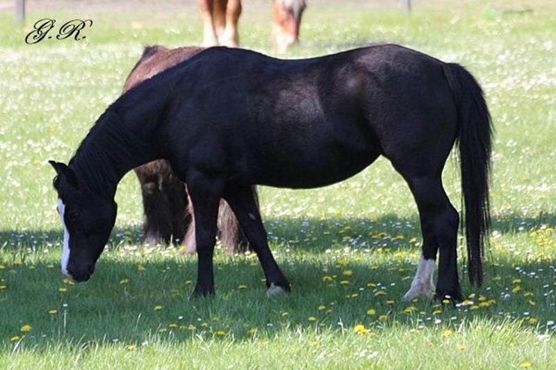 Schweren Herzens reduziere ich wegen eigenem Nachwuchs meinen Ponybestand noch weiter und bin nun bei meiner wundervollen Hermie angelangt. In ein absolutes Top zu Hause würde ich diese schöne Welsh A Stute mit toller Größe von ca. 120 Stockmaß mit samt ihrem zuckersüßen Stutfohlen in gefragter Sonderfarbe abgeben. Hermie kam sehr schüchtern zu uns und legt noch immer zeitweise die Ohren an - sie hat aber noch nie etwas böses gemacht! Sie ist bei uns leicht an der Longe angeritten worden, was sie wirklich artig gemacht hat. Auch Kinder können sie problemlos führen, putzen und im Schritt und Trab an der Longe reiten. Laut Schmied ist es gut möglich, dass sie in der Vergangenheit schon mal Rehe hatte. Bei uns lief sie den gesamten Sommer mit unserem Hengst in der Wiese ohne Probleme! Dennoch möchte ich darauf natürlich ehrlich hinweisen! Hermie ist brav zu verladen, artig beim Schmied und erträgt alles, was der Tierarzt halt so machen muss. Sie hat uns dieses Jahr ein wunderschönes Stutfohlen geschenkt welches ebenfalls zum Verkauf steht, weil wir den Vater und einige Geschwister behalten. Hermie hat unter der Geburt leider stark abgebaut und ist gerade dabei sich die nötigen Kilos wieder aufzufuttern. Sie darf sehr gern besichtigt werden aber ihr müsst ein kleines bisschen Fantasie mit bringen denn wenn sie wieder richtig rund ist, dann ist sie einfach noch mal schöner!! :) Wir wünschen uns für Hermie ein zu Hause, in dem sie ankommen darf und in dem sie so geliebt wird, wie sie nun mal ist. Immer etwas grumpy drein schauend aber in Wirklichkeit eine richtige Schmusebacke, die sofort den Kopf zur Seite neigt, wenn man sie hinter den Ohren krault. Sie ist aus den NIederlanden importiert und war vermutlich immer nur eine von vielen. Vielleicht darf sie dieses Mal mal ein richtiges Familienmitglied werden. Wir könnten uns Hermie auch gut vor dem Wagen vorstellen. Hermie 3000 EUR Stutfohlen 1300 EUR Beide zusammen bei zeitnaher Abholung 3850 EUR Gern kann Hermie von einem unserer Hengste erneut gedeckt werden. Bei uns stehet diese Jahr Penboeth Essay - ein wunderschöner bunter Brauner. Auch der Vater des Stutfohlens Ikkemaherdts Yestin könnte ggf erneut genutzt werden allerdings ist er einen ungewissen Zeitraum noch zur Vorbereitung zur Hengstleistungsprüfung weg.