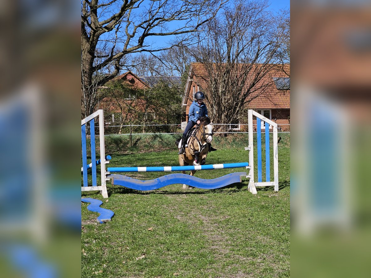Wir suchen für unser tolles Pony die Nadel im Heuhaufen. Ja, sie ist ein Blickfang und ein Pony, das viele tolle Eigenschaften mitbringt, aber sie ist auch keine eierlegende Wollmilchsau. Kinderponys müssen hohe Ansprüche erfüllen, denn sie sollen superartig, gesund, hübsch, rittig und nicht so haltungsintensiv sein. Als Elternteil hätte man gern eine Lebensversicherung für sein Kind, denn das Reiten sollte möglichst ungefährlich verlaufen. Glöckchen bringt viele dieser Eigenschaften mit. Man ruft sie auf der Koppel und sie kommt postwendend angoloppiert, weil sie sich immer über eine Beschäftigung freut. Glöcki liebt Ausritte, bei denen sie geführt, am Rad oder frei läuft. Dies tut sie auch gern allein ohne andere Pferdebegleitung. Sie springt sehr gern, lässt sich aber auch in der Halle oder auf dem Platz gut und gern reiten. Auch an der Longe macht sie dies unkompliziert mit. Wir besitzen sie seit sechs Jahren und sind in dieser Zeit häufig zu Ausreitzielen mit ihr gefahren. Sie ist unerschrocken im Gelände, aber definitiv keine Schlaftablette. Geführt passt sie sich aber absolut ihrem Reiter an. Glöckchen hat bei einigen Ringreiten und Führzügelwettbewerben mitgemacht und meine Tochter durch den Pferdeführerschein begleitet. Wir selbst haben einen Pensionsstall und haben versucht, ihr in den letzten Jahren bestmögliche Haltungsbedingungen zu bieten. Sie ist staubempfindlich und steht bei uns aktuell auf Späne. Im Sommer steht sie bei uns 24h auf einer mageren Koppel und dabei geht es ihr lufttechnisch ideal. Sie hatte auch zu keiner Zeit Rehe oder Anzeichen dafür. Auch eine Offenstallhaltung wäre für sie gut denkbar, allerdings braucht sie Platz, um anderen Pferden aus dem Weg gehen zu können. Für sie wäre weniger Stress in einem kleineren System auf alle Fälle auch sehr gut. Glöcki ist artig beim Schmied und ihr Verhalten beim Tierarzt hat sich in der Zeit unseres Besitzes deutlich gebessert. Sie ist regelmäßig geimpft worden und jährlich zahnmedizinisch versorgt worden. Die Gabe von Wurmkuren ist bei ihr über das Futter gut möglich. Ich werde dieses Pony mit einer ehrlichen "Gebrauchsanweisung" abgeben und auch wirklich nur, wenn mein Gefühl dabei gut ist. Ich wünsche mir für Glöckchen ein wirklich tolles Zuhause, bei dem der Preis zwar zweitrangig ist, aber auch genauso wertgeschätzt wird, was für ein tolles Pony man im Gegenzug erhält.
