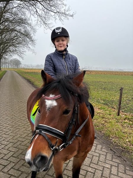 Onze lieve Porsche mag een ander kindje heel blij gaan maken. Onze jongste dochter is met haar begonnen en stapt nu over op onze D pony. Porsche is een Welsch stamboek (ster) merrie van 5 jaar oud. Ze houdt enorm van poetsen, knuffels en lekker rijden. In de bak of buiten, echt alles is goed. Ze is nog wel jong dus enige begeleiding is wenselijk. Kortom wij zoeken een nieuw 5***** huisje/baasje voor haar!