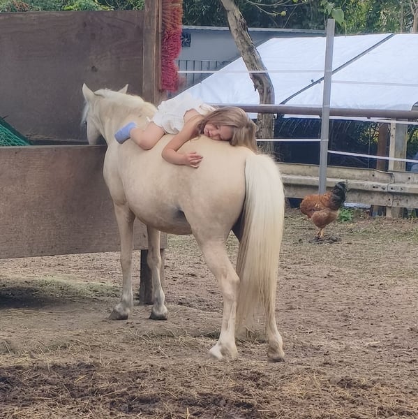 Ponieważ niestety nasze dzieci nie wykazują oczekiwanego zainteresowania, oferujemy naszą słodką Małpkę na sprzedaż. Ma około 7 lat i jest bardzo przyjazna w kontakcie z dziećmi. Z łatwością znosi wszelkie psoty, czy to podczas wizyt w przedszkolu, czy podczas wyjazdów w teren. Świetnie się na niej jeździ, nawet jeśli dzieci muszą czasem trochę się sprzeciwić – to typowa kucykowa osobowość. Niestety u nas jest całkowicie niedożywiona i przez to pokazuje charakterystyczny chrapliwy chód. Przy normalnej pracy nie widać tego objawu. To wyłącznie problem mięśniowy (potwierdzony przez weterynarza i osteopatę). Ma doświadczenie turniejowe i odnosiła już sukcesy w klasie E w ujeżdżeniu. Zdecydowanie jest młodym kucykiem z potencjałem i ładnymi chodami. Można ją również rozważyć do terapii lub jazdy rekreacyjnej, co również wydaje się odpowiednie.