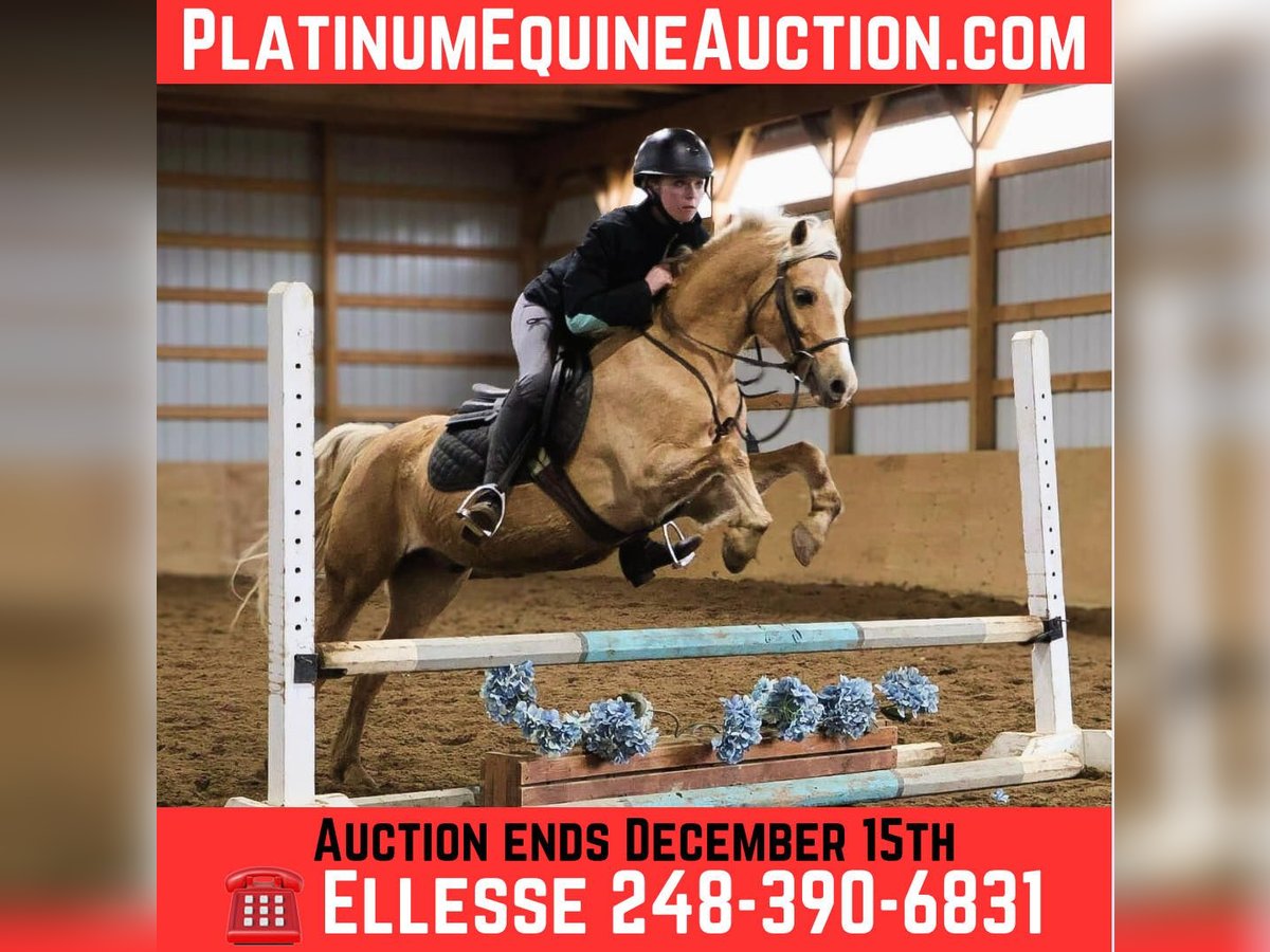 ONLINE AUCTION Place your bids at www.PlatinumEquineAuction.com Starting Bid $3500 Auction ends December 15th, 2024 Need a new saddle? Check out White Rock Saddles on our website or Facebook! Meet Biscuit or registered as “Wheels On The Bus” as we call him around the farm. This golden palomino gelding stands 13.1hh at 11 years old. He has a beautiful blonde mane and tail and the most darling face you will see. He is a grade welsh who is registered with the USEF. Biscuit has 3 nice gaits, a quiet walk, floaty flat kneed trot and a great canter. He has flying changes when asked. He has a nice uphill build making him the perfect mount for the little ones. Biscuit has been ridden both English and western by adults and kids alike. He holds his gaits easily and moves forward off of a cluck. Biscuit has worked summer camp teaching flat work and pole piles to beginners. He has also been jumped 2ft 3 and jumps in great form. He has been shown in hunter shows. Biscuits abilities shine past the arena as this boy loves the trails, deep woods, water, deer no problem. He’s a drop the reins and enjoy the scenes kind of guy. He has also dabbled in some barrel racing, poles and flags! He is super game for all of it. Biscuit has proven him self to be a fantastic teacher and versatile pony. Biscuit lives in Howell MI 48855. Enjoy the video and give me a call or text at 248-390-6831 to meet him. Boarding is available until Christmas if you would like to get this guy under the tree! ONLINE AUCTION Place your bids at www.PlatinumEquineAuction.com Starting Bid $3500 Auction ends December 15th, 2024 Need a new saddle? Check out White Rock Saddles on our website or Facebook!