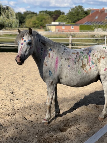 Zum Verkauf steht ein wunderschöner Schimmel-Wallach, geboren 2020. Mit einem Stockmaß von ca 120 cm ist er ideal für die ganz kleine Reiter. Er ist super artig, lässt sich von Kindern verladen, geführt reiten, putzen, anmalen und eben alles was Kinderherzen höher schlagen lässt. Er hat keinerlei Unarten! Bei ernsthaftem Interesse freue ich mich über Nachrichten. (Es handelt sich nicht um einen Notverkauf, wir suchen das allerbeste Zuhause.)