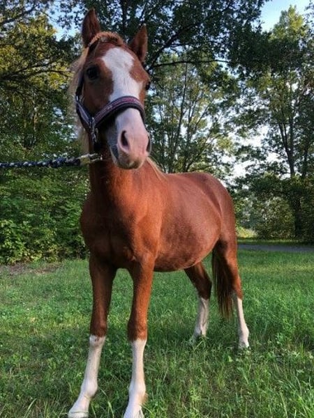Unser 6 Jähriger Welsh Wallach Mahren Red Ruby (genannt "Socke") sucht fördernde Hände. Ursprünglich habe ich ihn als Fahrpony für meine Kinder gekauft und erstmal auf die Wiese gestellt. 4/5 jährig wurde er eingefahren, aber meine Kids haben nicht wirklich Interesse am Fahrsport entwickelt. Daher gebe ich ihn nun aus der Hand, damit er einen anderen Menschen glücklich machen kann. "Socke" hat hervorragende Bewegungen und großes Potential für den Fahrsport. Da er mit 1,20m Stockmaß recht klein ist, wäre er vermutlich in einem 2- oder Vierspänner gut aufgehoben. Er hat eine sehr gute Grundausbildung erhalten von einem hoch-erfolgreichen Fahrer und Ausbilder. Für die Vorstellung auf Turnieren fehlte uns leider die Zeit und die Kutsche. Näheres dazu gerne persönlich! Bei uns auf dem Hof begegnet er vielen Kindern und anderen Pferden/ Ponys. Wir machen regelmäßig Bodenarbeit und die Ponys werden von Kindern "betüddelt". Den Umgang mit Kindern kennt er daher, ist aber (noch) kein Pony, mit dem ich Kinder alleine los schicken würde. Charakterlich schätze ich ihn aber so ein, dass er mit weiterer korrekter Ausbildung zu einem fantastischen Sport- und Freizeitpartner für groß und klein heranwachsen wird. Angeritten ist er bisher nicht. Es saß aber schon ein paar Mal jemand auf ihm und ist Schritt und Trab an der Longe geritten. Das hat er total brav mitgemacht. Videos von den Grundgangarten werden aktuell angefertigt können gerne per WhatsApp versendet werden. Aktuell habe ich keine Kutsche für ihn auf dem Hof. Für ein Probe-Fahren müsste ich daher etwas Vorlauf haben, um eine zu organisieren. Da er ja verkauft werden soll, lohnt es sich für mich nicht, eine passende Kutsche zu kaufen.
