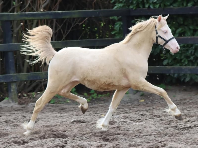 Renaissance Croissant Royale Welsh B 10.03.2023 123 cm momenteel, verwacht ca. 130 cm Roodschimmel, smoky cream Vader: Carrwood Tom Ellis Moeder: Renaissance Cheikha Mozah Moeder vader: Tijd Vlijts Black Berry Regelmatig bekapt, ontwormd en gevaccineerd Onze kleine kleursensatie zoekt een 5*-thuis Getest Roodschimmel of smoky cream (aaEe CRCR) is Crossie iets heel bijzonders! De basis kleur is zwart met dubbel opgehelderd, waardoor hij altijd 100% opgehelderde veulens zal fokken. Smoky Black, Palomino en Buckskin, afhankelijk van het merrie. Maar dat is niet het enige wat hem bijzonder maakt, want voor een zo jong pony is hij ontzettend braaf. Typisch Welsh heeft hij een favoriete verzorgingspersoon, maar hij is ook met anderen goed in de omgang. Of het nu als toekomstige hengst, rij- of pony voor de kar is, hij zal veel plezier brengen. Hij is nooit agressief of gemeen, bijt of trapt niet, is braaf bij de dierenarts en hoefsmid, laat zich laden en staat goed op de trailer. Nieuwsgierig en vriendelijk is hij een van de favorieten in onze stal. Hij is geboren op het Belgische succesvolle stoeterij Renaissance, waar ook zijn moeder is gefokt. Zijn vader komt uit Engeland en heeft al in Nederland, Tsjechië en België gefokt. Het afgelopen jaar is de vader als dekhengst naar Brazilië geëxporteerd. Daarnaast is hij een braaf kinderpony, naast zijn fokcarrière. Crossie heeft een uitstekende draf, een voor Welsh vrij ongebruikelijke zeer goede stap en een goede galop. Tot augustus heeft hij het hele jaar met hengsten en ruinen van elke leeftijd en grootte samen in de groep in de buitenstal gestaan en is hij volledig probleemloos in de groep. 24/7 hooi, in de zomer extra weiland, mineralen ter beschikking en een verharde trail. We hebben hem leeftijdsgebonden langzaam in training genomen. Inmiddels kent hij vrijlopen, longeren, hoofdstel, singel, zadel, staartriem en balkenwerk in alle basisgangen en laat hij zich braaf aan de hand beoordelen. Hij is klaar om direct te beginnen met het dekken! Hij kan ook snel hier geplaatst en verder opgeleid worden. We bieden zowel het inrijden als het inrijden aan. Hij mag volgend jaar ook graag terugkomen en de winter nog van zijn jeugd genieten. Kent tractoren, honden en kinderen van alle leeftijden, maar is door zijn leeftijd natuurlijk nog geen volledig kinderpony. Heeft nog niet gedekt en heeft ook geen hengstgedrag. Crossie kan graag na afspraak worden leren kennen. www.ponyzucht-kaiser.de