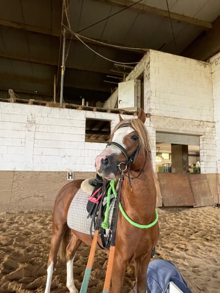 Highgrove ist ein selbstbewusstes, ausdrucksstarkes Welsh B Pony. Zur Zeit wird er angeritten und zeigt sich hierbei lieb und nervenstark. Wir können uns Highgrove sowohl als Kinderpony, wie auch als Fahrpony gut vorstellen. Auf Wunsch wird er vor Abholung noch kastriert. Sein Kumpel Daantje hat dieselbe Farbe und Blesse, nur seine Vorderbeine sind nicht weiß. Wer ein Kutschgespann zum selber fertig machen sucht, wird viel Freude mit beiden haben. Auch Daantje kann vor Abholung kastriert werden. Bitte nur über Telefon oder Whatsapp anfragen. 01639129382