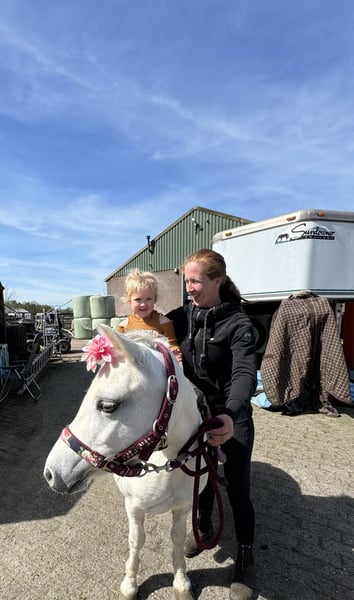 How adorable is our Viool! 🌺 She is 13 years old and approximately 120 cm tall. She has had a few foals. Sweet pony! With papers. We don't know if she has ever been ridden before. She is perfectly fine with children on her back.