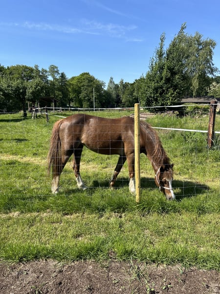 Roza is een prachtige 17-jarige Welsh pony (B-pony) met een stokmaat van ongeveer 1.30 m. Ze is ontzettend lief, gek op kinderen en schrikt niet snel. Ze heeft in het verleden kleine wedstrijdjes gelopen, maar staat nu een jaar stil omdat haar eigenaresse niet meer wil rijden. Daarom zoeken we een nieuw, liefdevol huis voor haar waar ze alle aandacht en vertroeteling krijgt die ze verdient. ✨ Pluspunten van Roza: • Nooit hoefbevangen geweest, kan dus gerust 24/7 op de wei. • Verkeersmak en graag in de buurt van anderen – ze staat het liefst niet alleen. • Betrouwbaar en lief met kinderen. • Houdt van wandelen en buitenritjes, superbraaf en schrikt niet snel. Het rijden zal rustig weer opgebouwd moeten worden, omdat ze dit al een jaar niet meer gedaan heeft. Wel is ze altijd lekker met ons meegewandeld, waarin ze laat zien hoe braaf en stabiel ze is. Na vorig jaar last te hebben gehad van erge mok, is ze wat terughoudend geworden bij de tandarts, hoefsmid en dierenarts. Dit gaat gelukkig steeds beter, en met de juiste steun en vertrouwen zal dit weer helemaal goedkomen. Voorheen deed ze dit namelijk altijd keurig. Kortom: Roza is een lieve en betrouwbare pony die nog jarenlang plezier en gezelligheid kan brengen bij de juiste mensen.